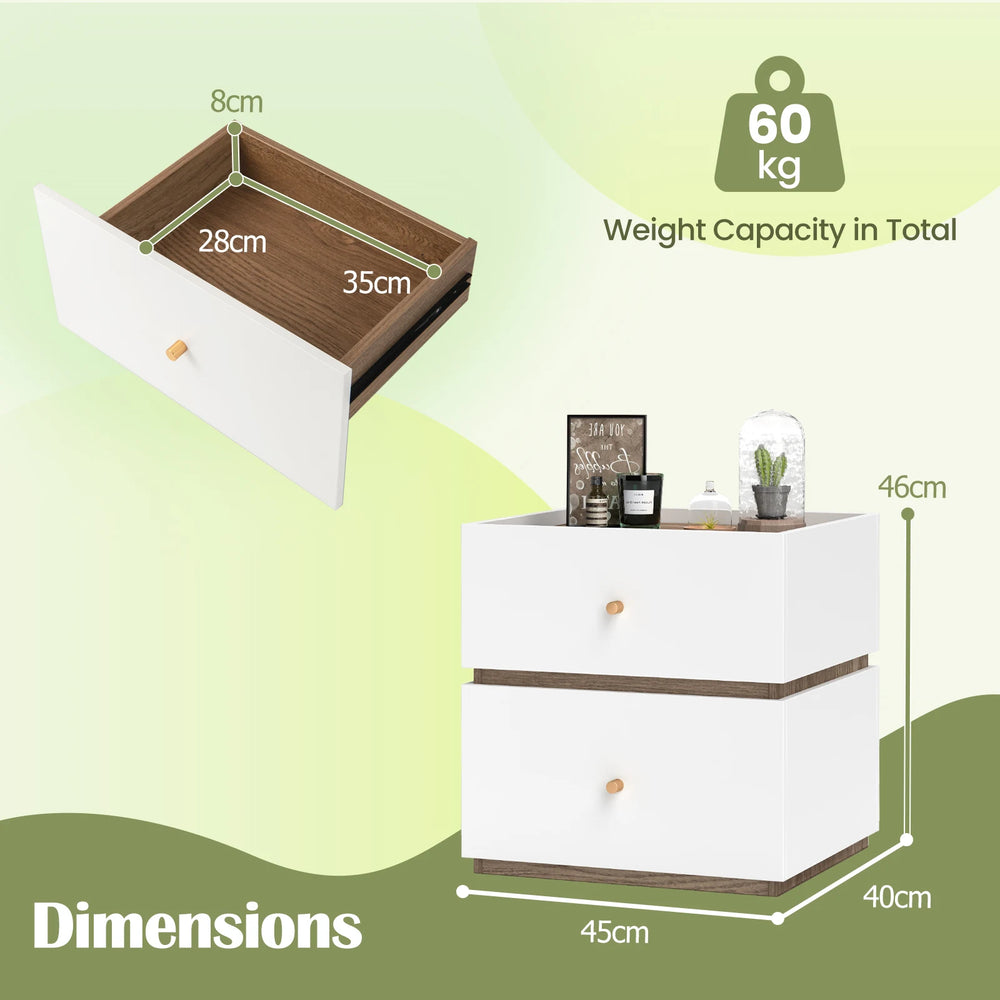2-Drawer Modern Nightstand with Storage for Living Room Bedroom