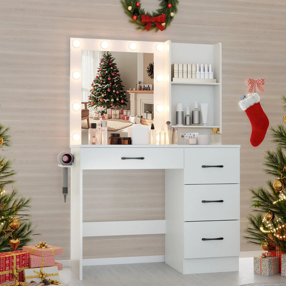 Makeup Vanity Desk Dressing Table with Mirror Lights and Charging Station-White