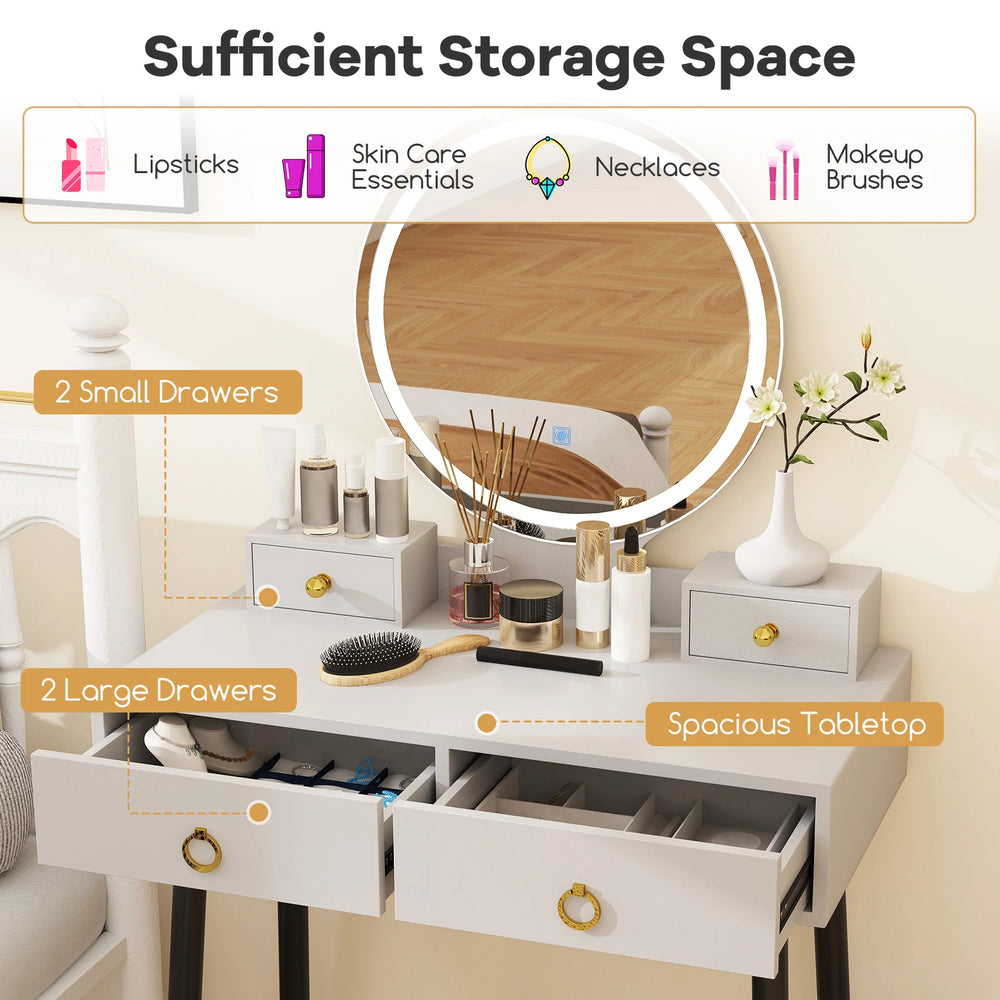 Makeup Vanity Desk with Lighted Mirror for Bedroom-Grey