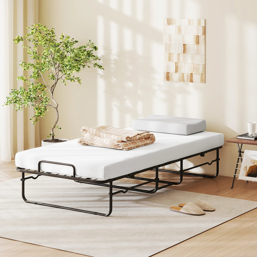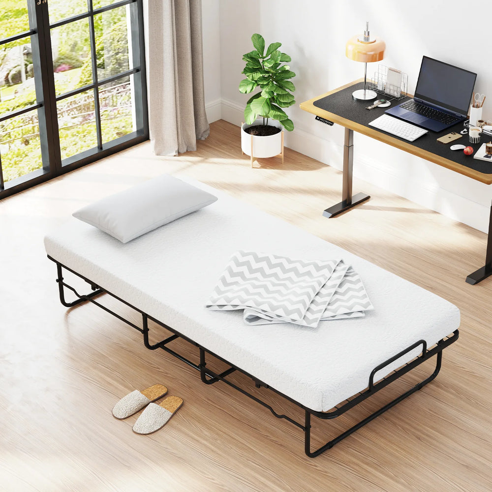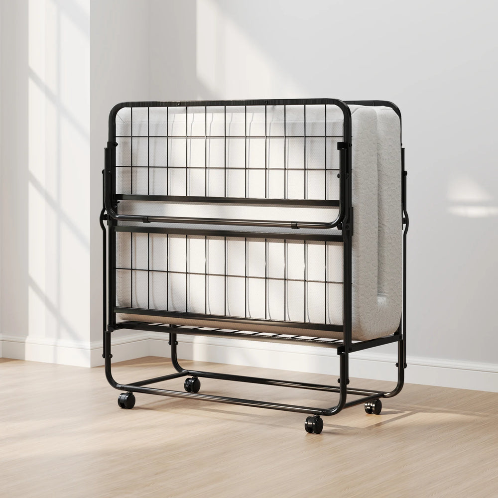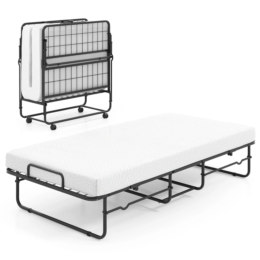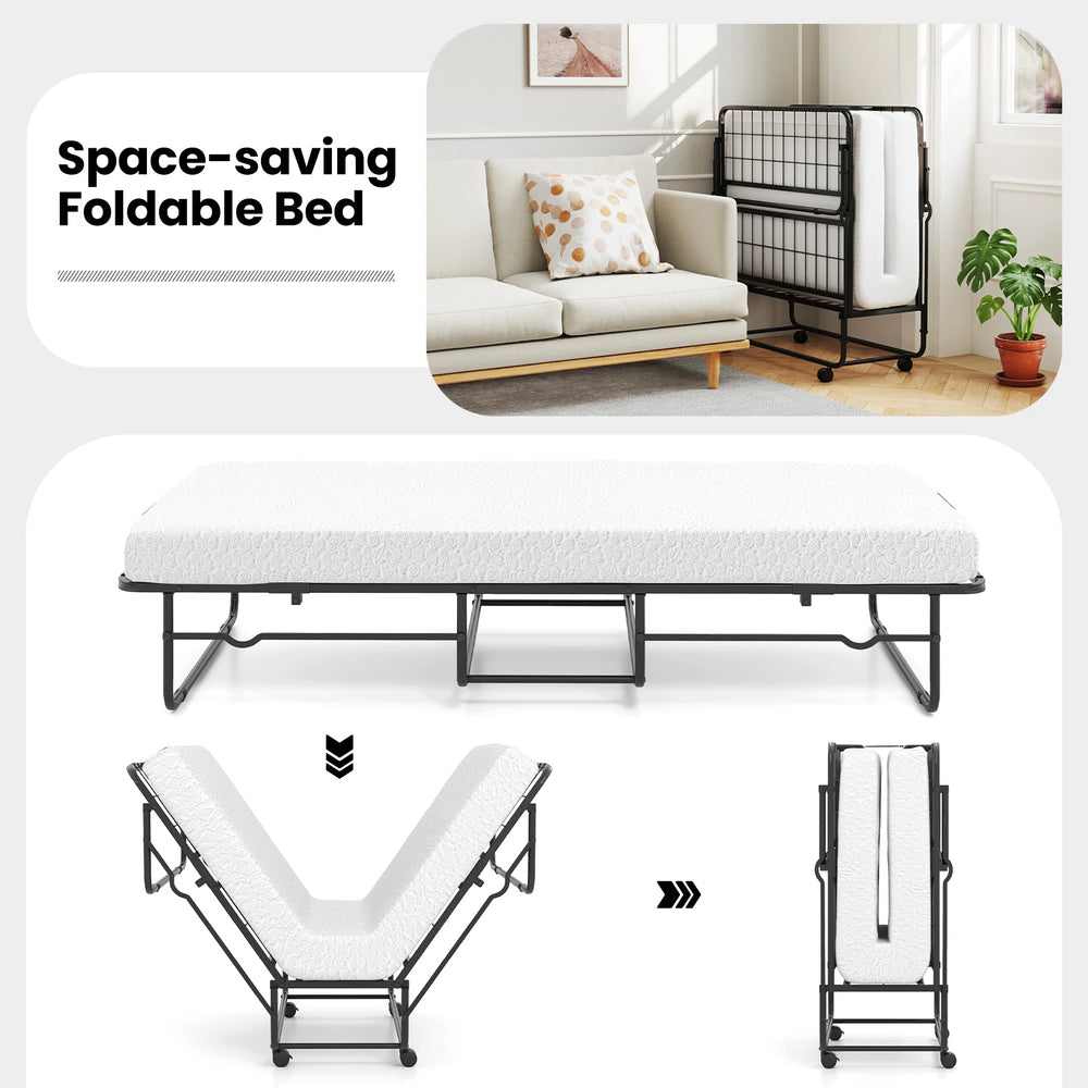 Folding Bed 190x90cm with Mattress Single Extra Bed with Memory Foam Metal Frame Lockable Caster Bed
