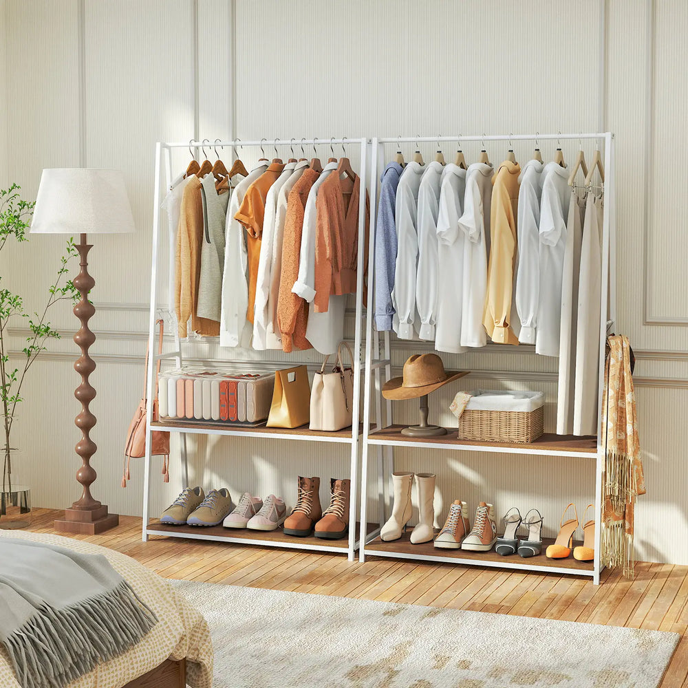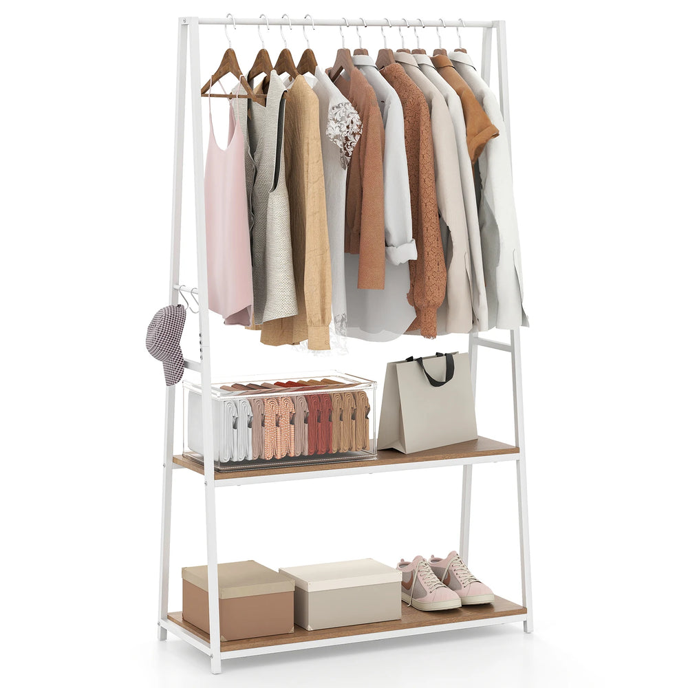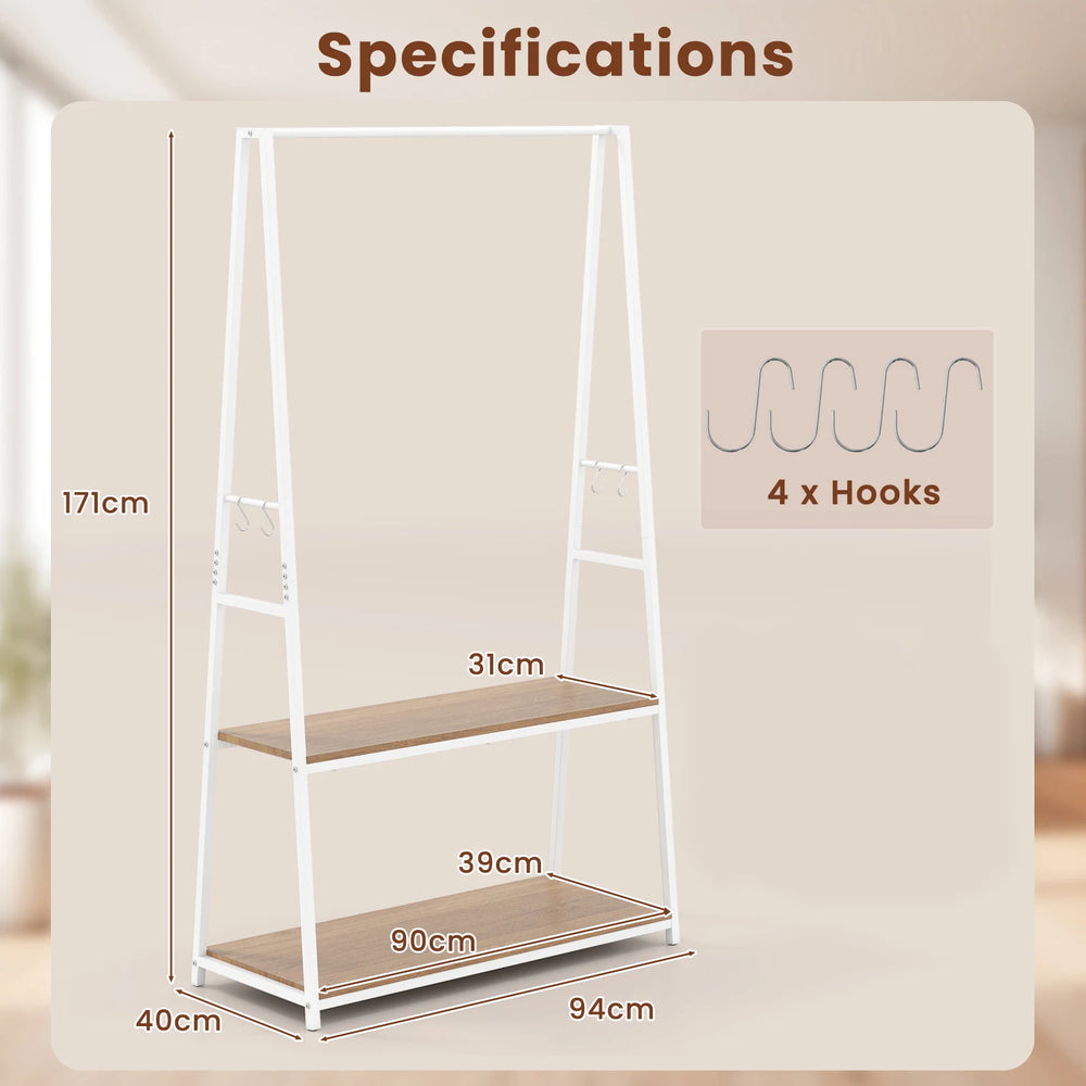 Clothes Rack with 2 Shelves and S Hooks for Laundry-Natural