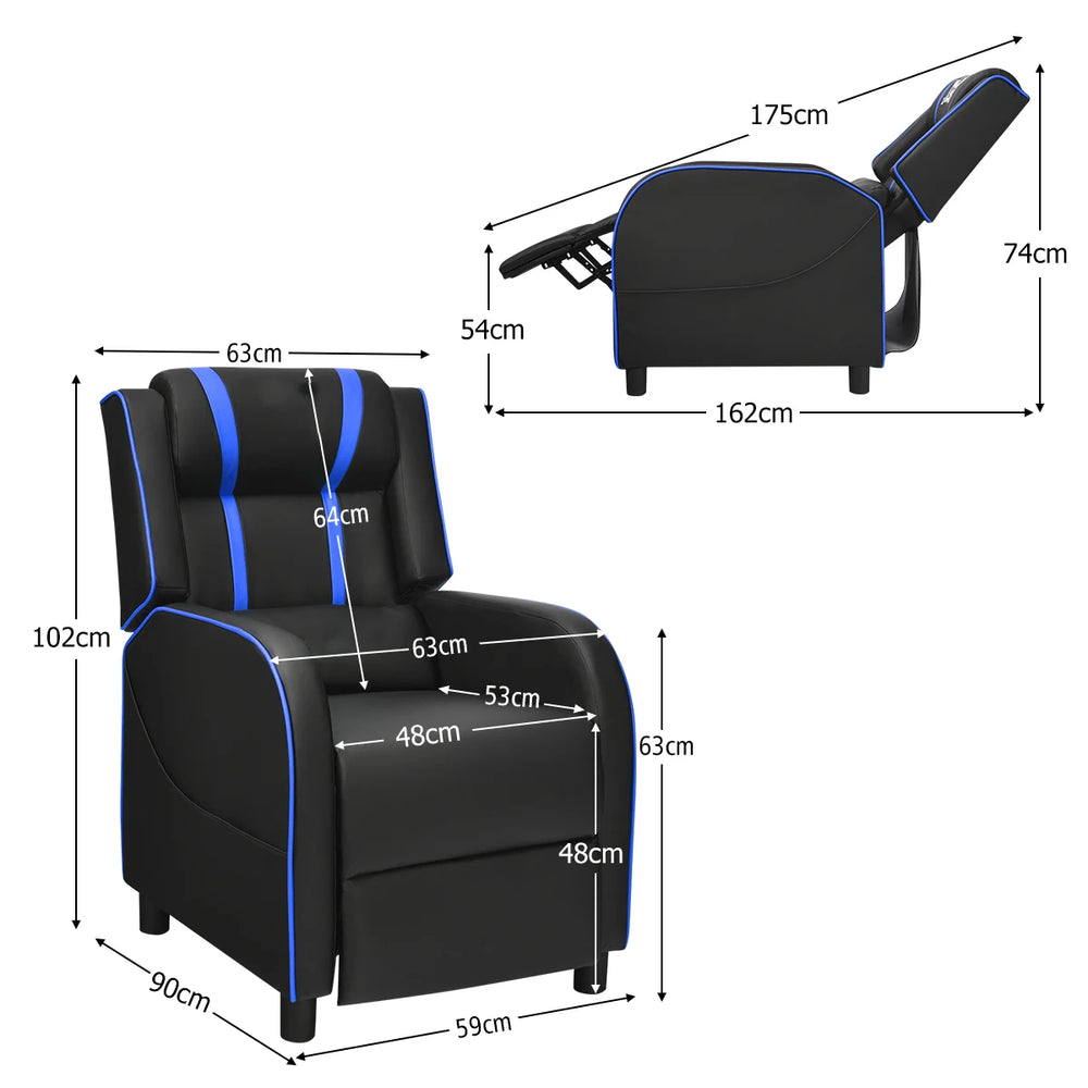 Recliner gaming chair with lumbar cushion