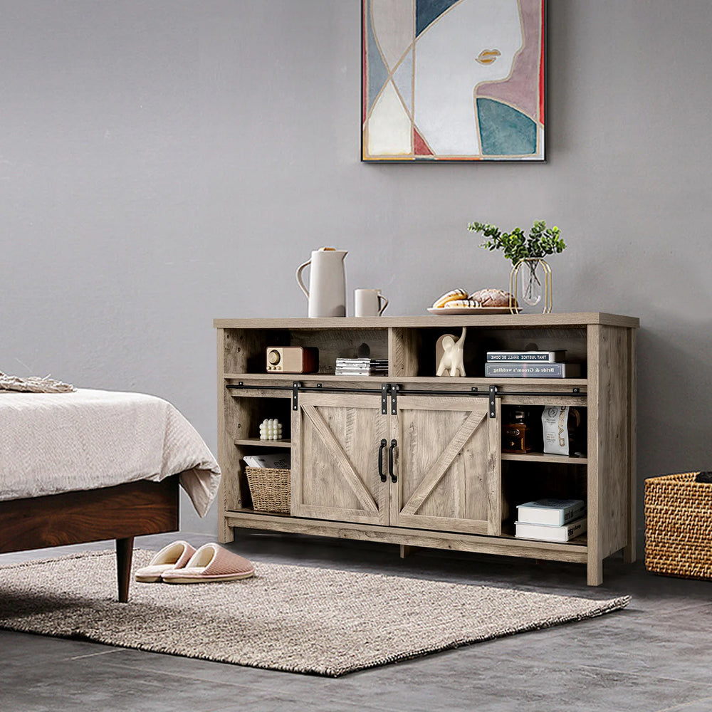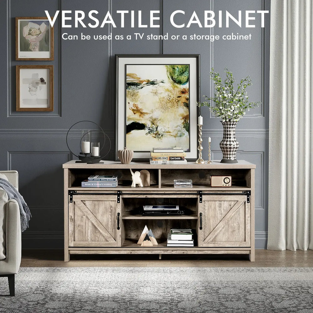 59 Inch Sliding Barn Door TV Stand with Adjustable Shelves for TVs up to 65 Inch-Light Brown
