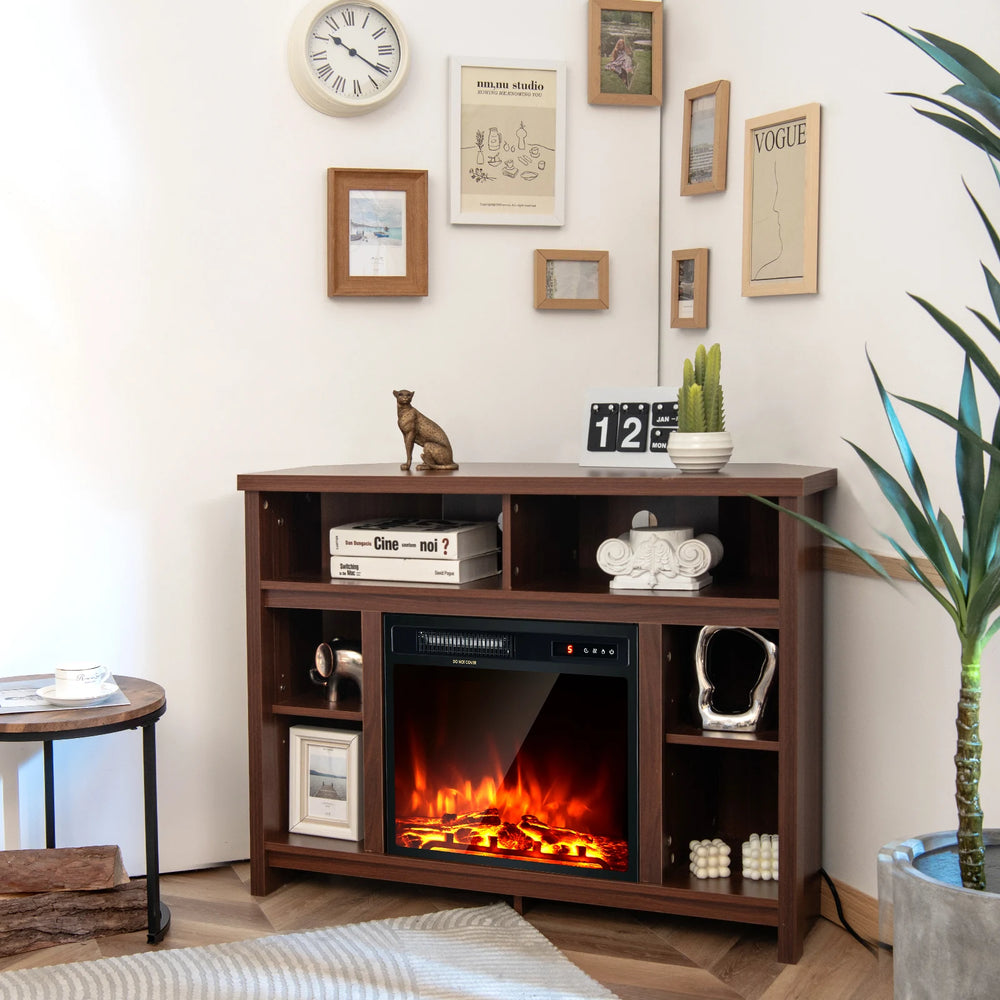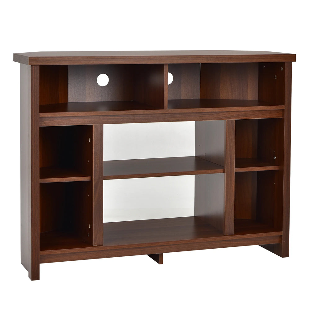 Modern Corner TV Stand with Adjustable Shelves for TVs up to 48 Inch-Coffee
