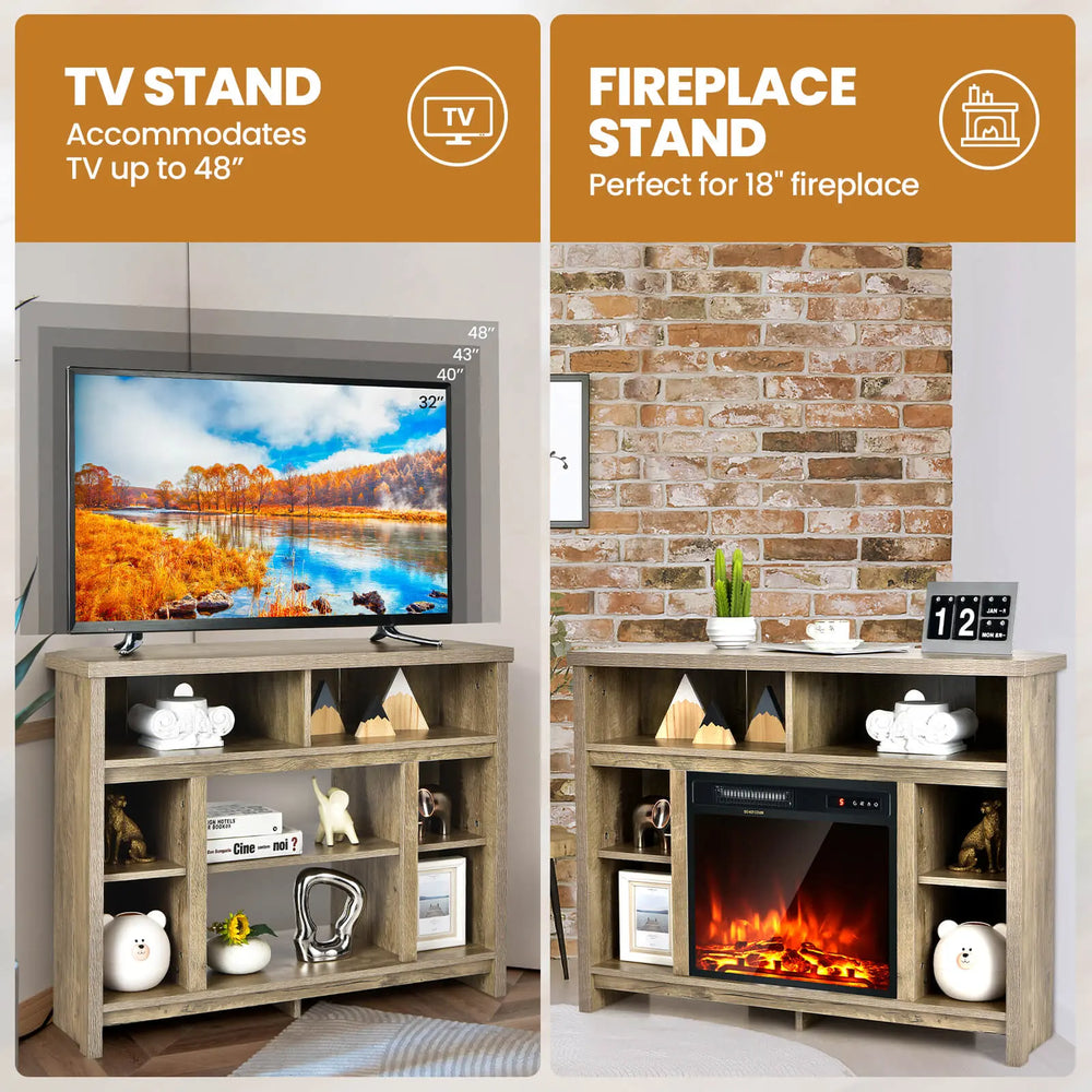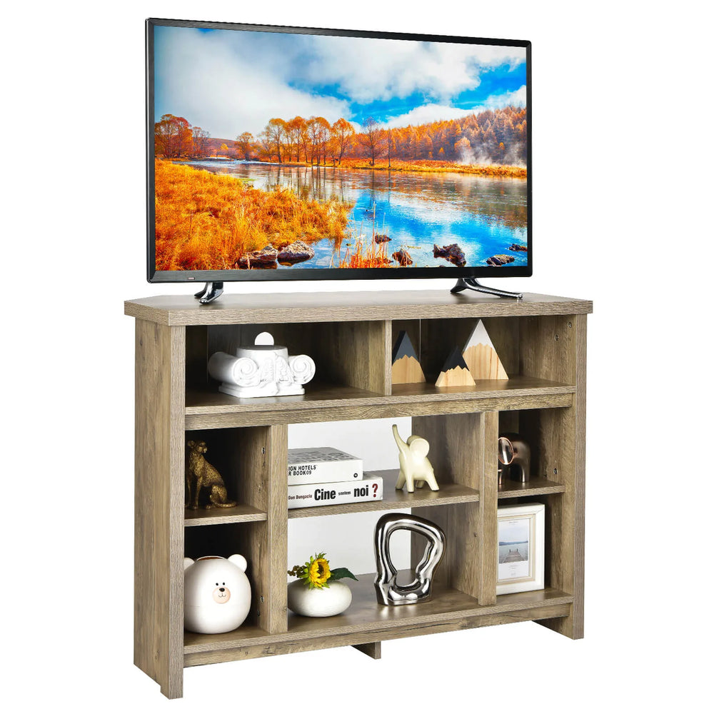 Modern Corner TV Stand with Adjustable Shelves for TVs up to 48 Inch-Natural