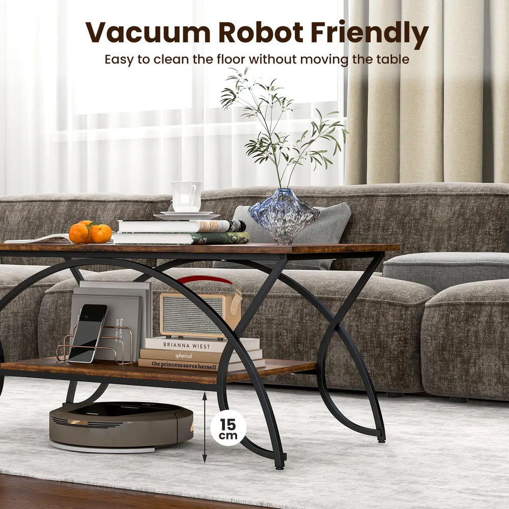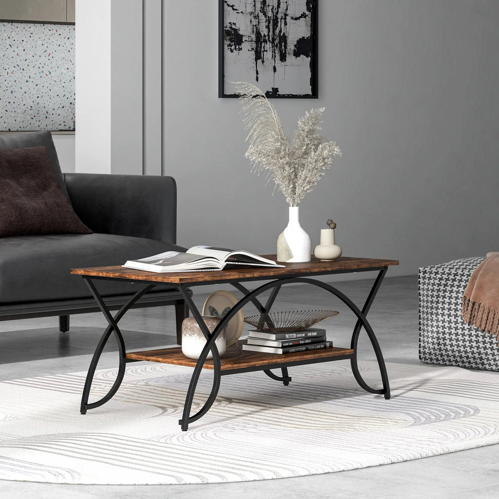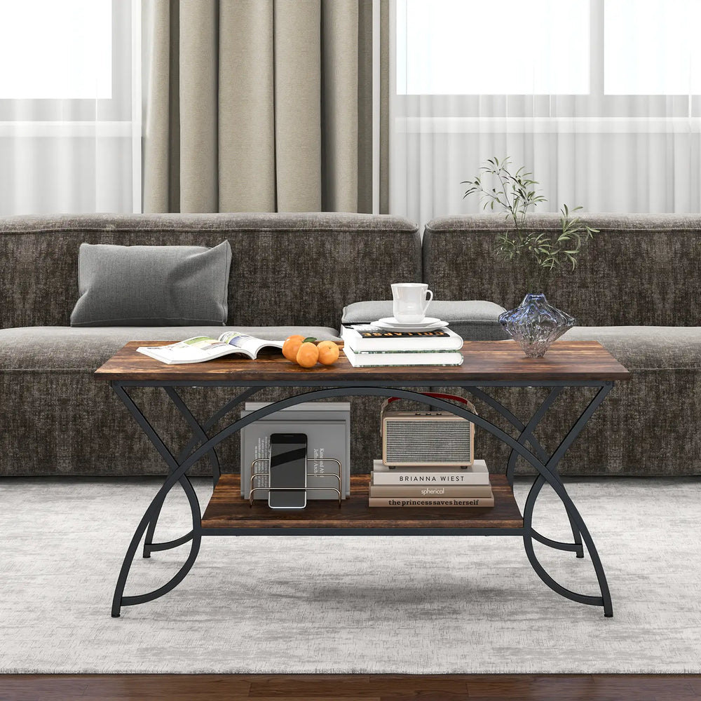 Color: White & Golden/White & Black/Dark Brown/Rustic Brown Material: Engineered wood, steel Overall dimensions: 39.5" x 19.5" x 18" (L x W x H) Weight capacity of tabletop: 110 lbs Weight capacity of shelf: 44 lbs Net weight: 26 lbs Package includes: 1 x Coffee table 1 x User manual