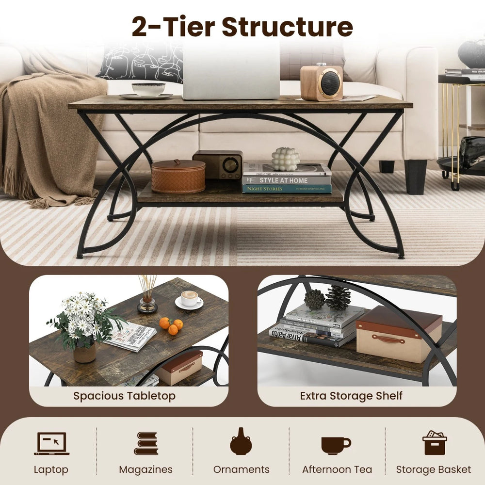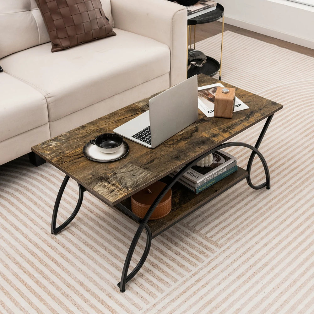 Color: White & Golden/White & Black/Dark Brown/Rustic Brown Material: Engineered wood, steel Overall dimensions: 39.5" x 19.5" x 18" (L x W x H) Weight capacity of tabletop: 110 lbs Weight capacity of shelf: 44 lbs Net weight: 26 lbs Package includes: 1 x Coffee table 1 x User manual