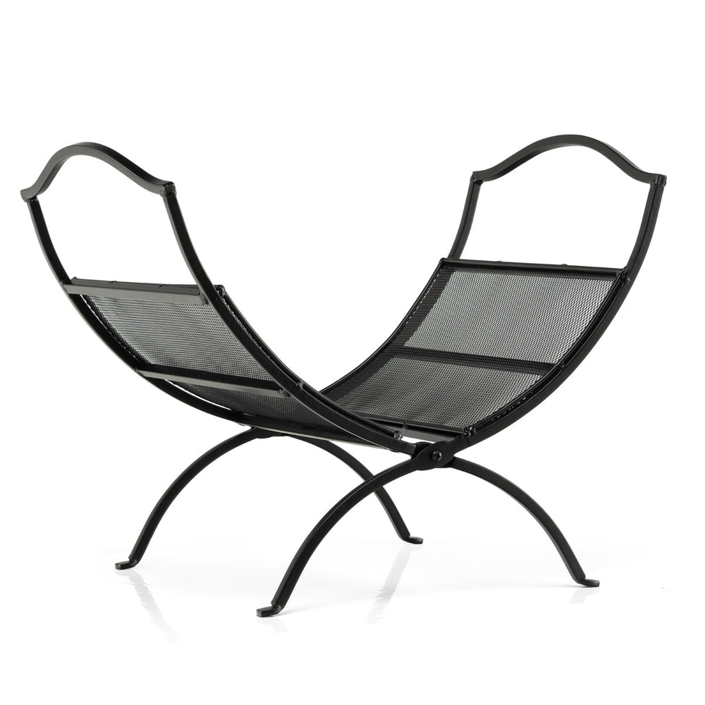 19 Inch Folding Fireplace Log Rack with Convenient Handle-Black