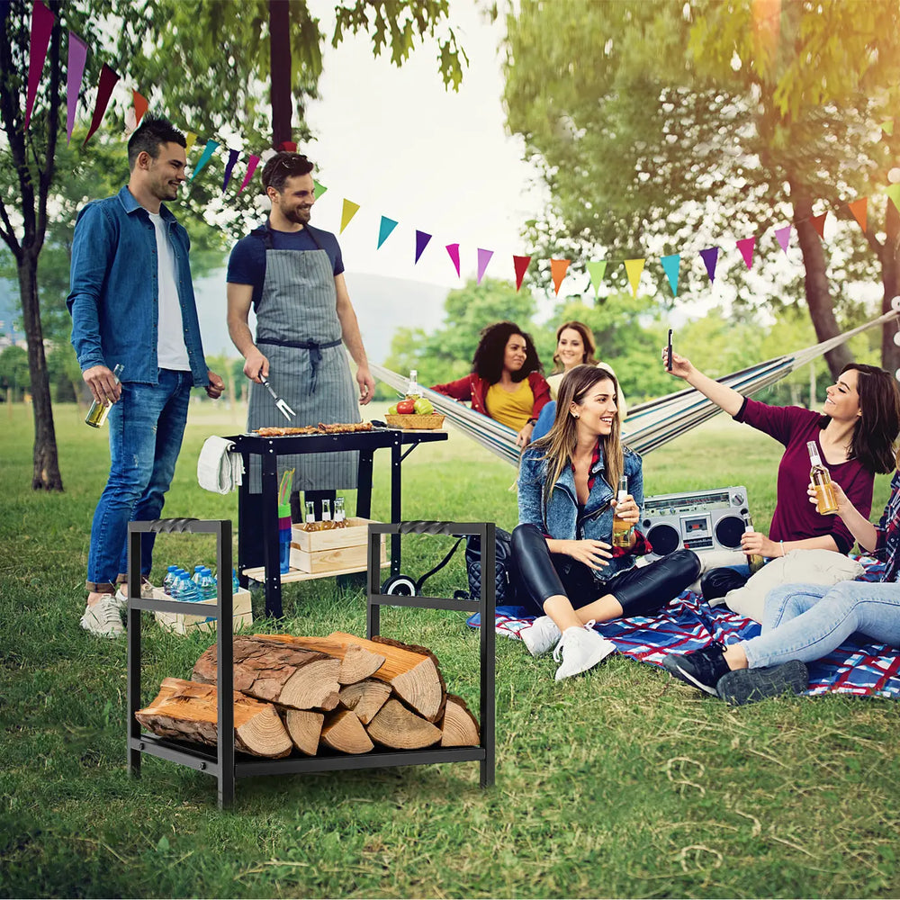 Firewood Log Rack with Unique Handle and Raised Feet-Black