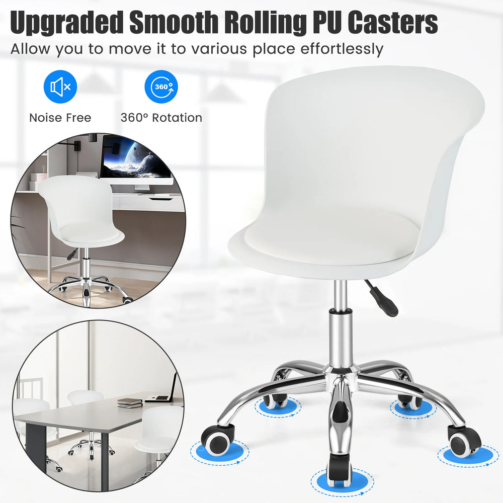 Set of 2 Office Desk Chair with Ergonomic Backrest and Soft Padded PU Leather Seat-White