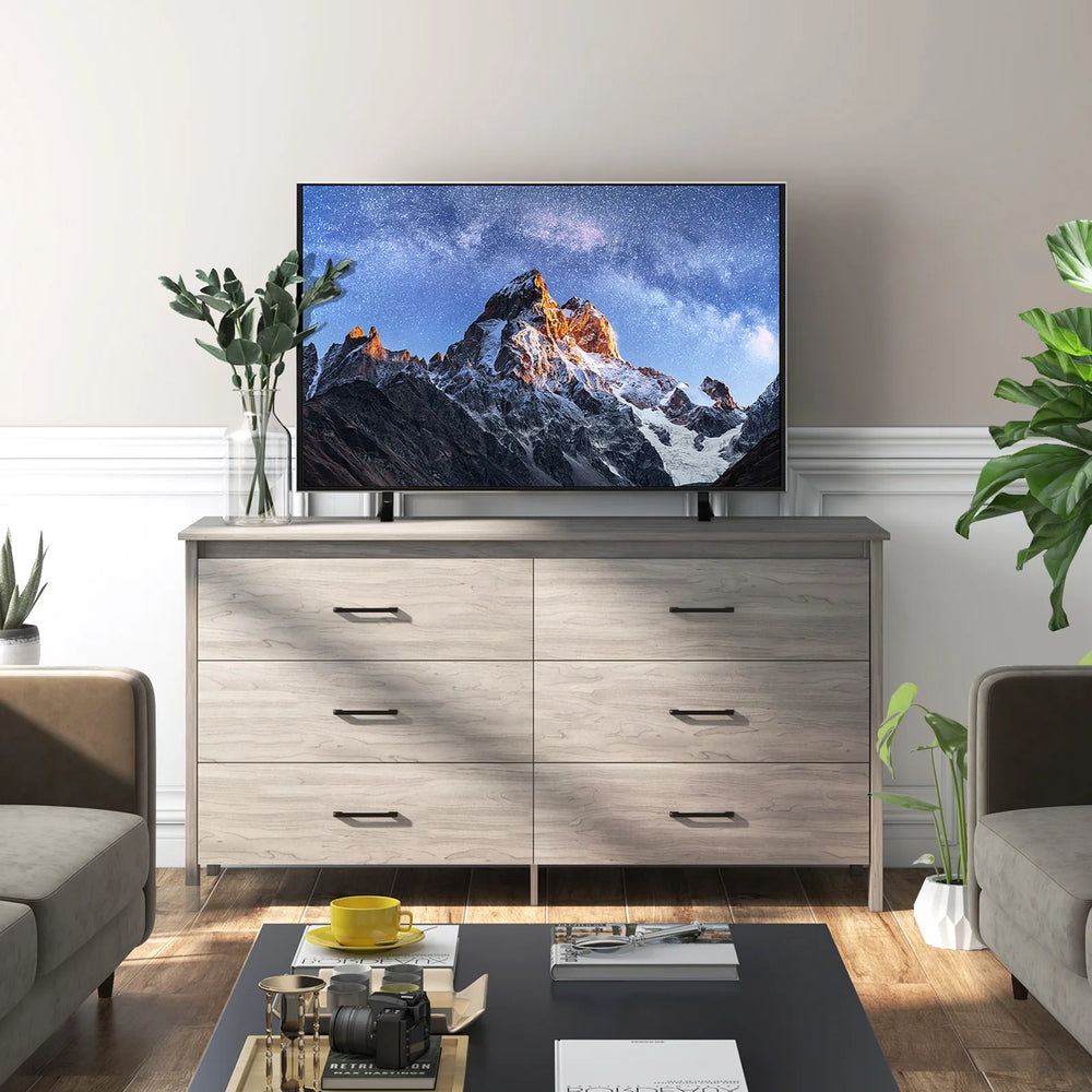 6-Drawer Wide Dresser Chest with Center Support and Anti-tip Kit-Gray