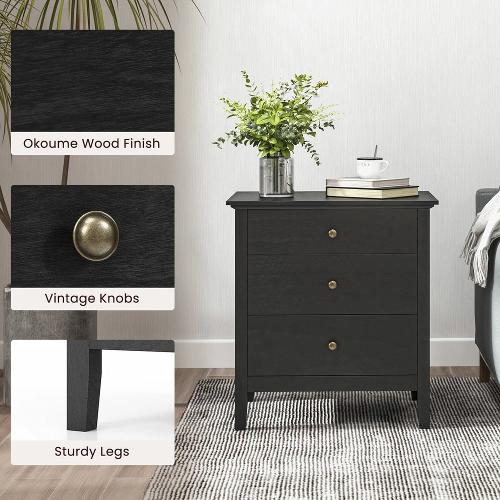 3-Drawer Wooden Nightstand with Storage and Wood Finish-Black