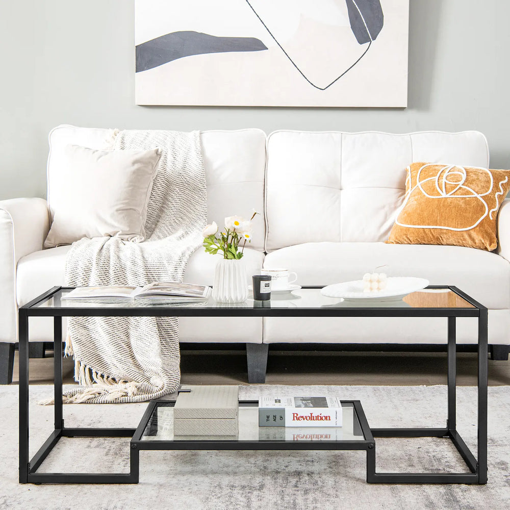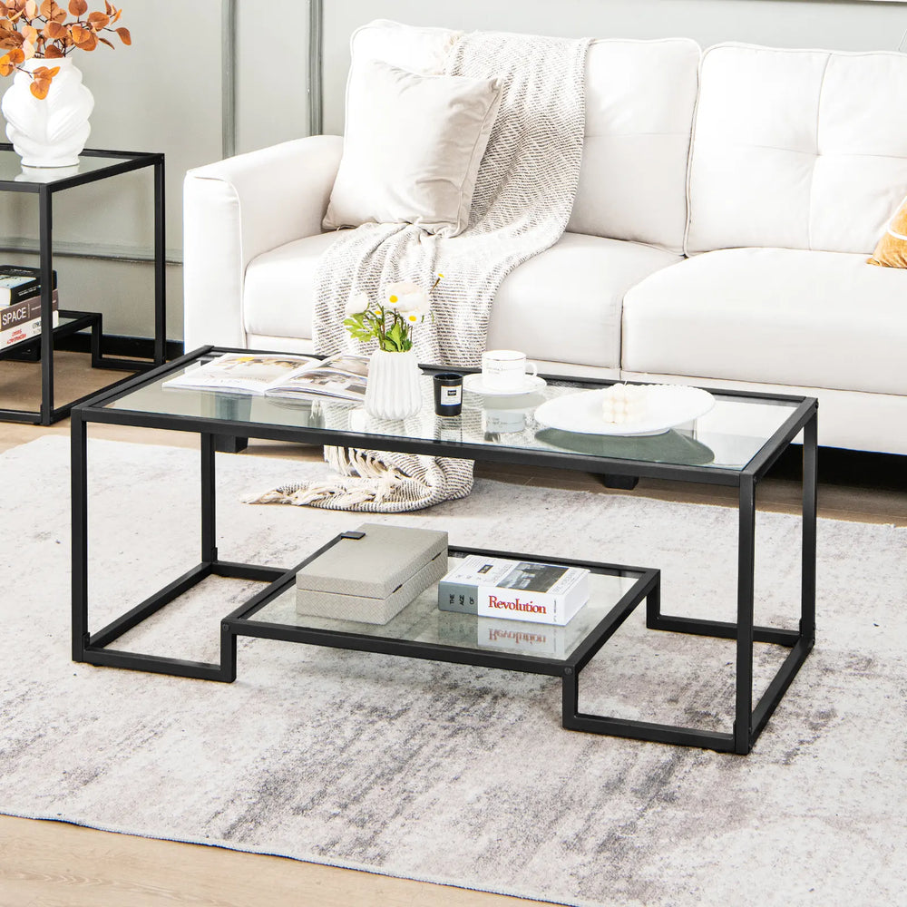 Modern Rectangular Coffee Table with Glass Table Top-Black