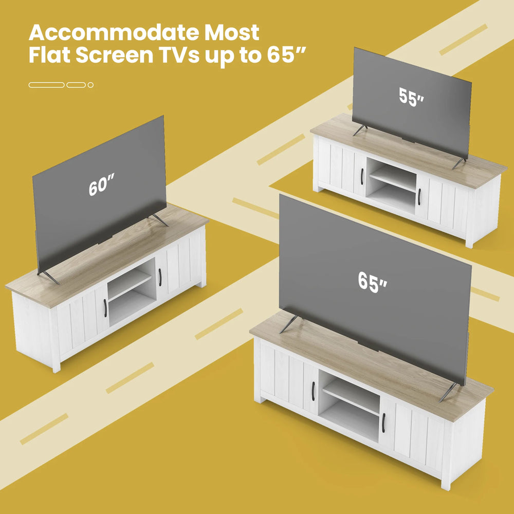 TV Stand with 2 Cabinets and Open Shelves for TVs up to 65 Inch-Natural