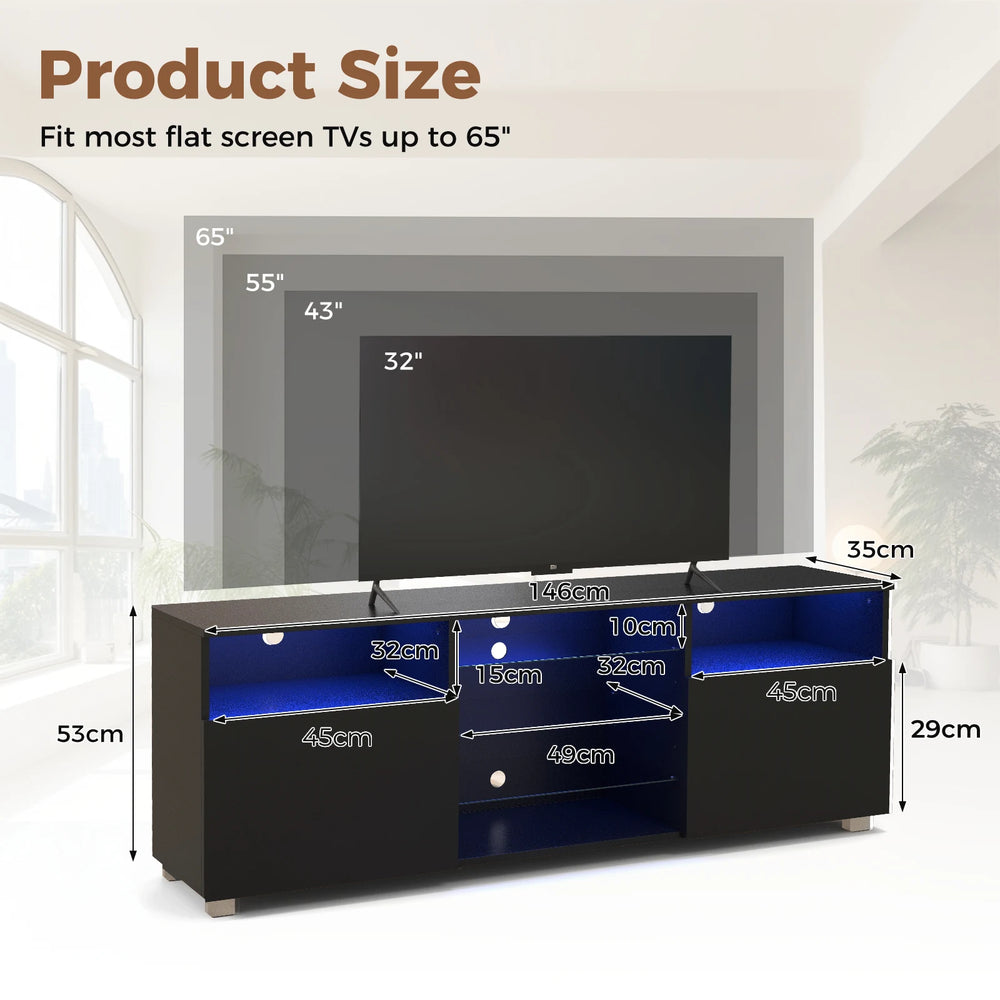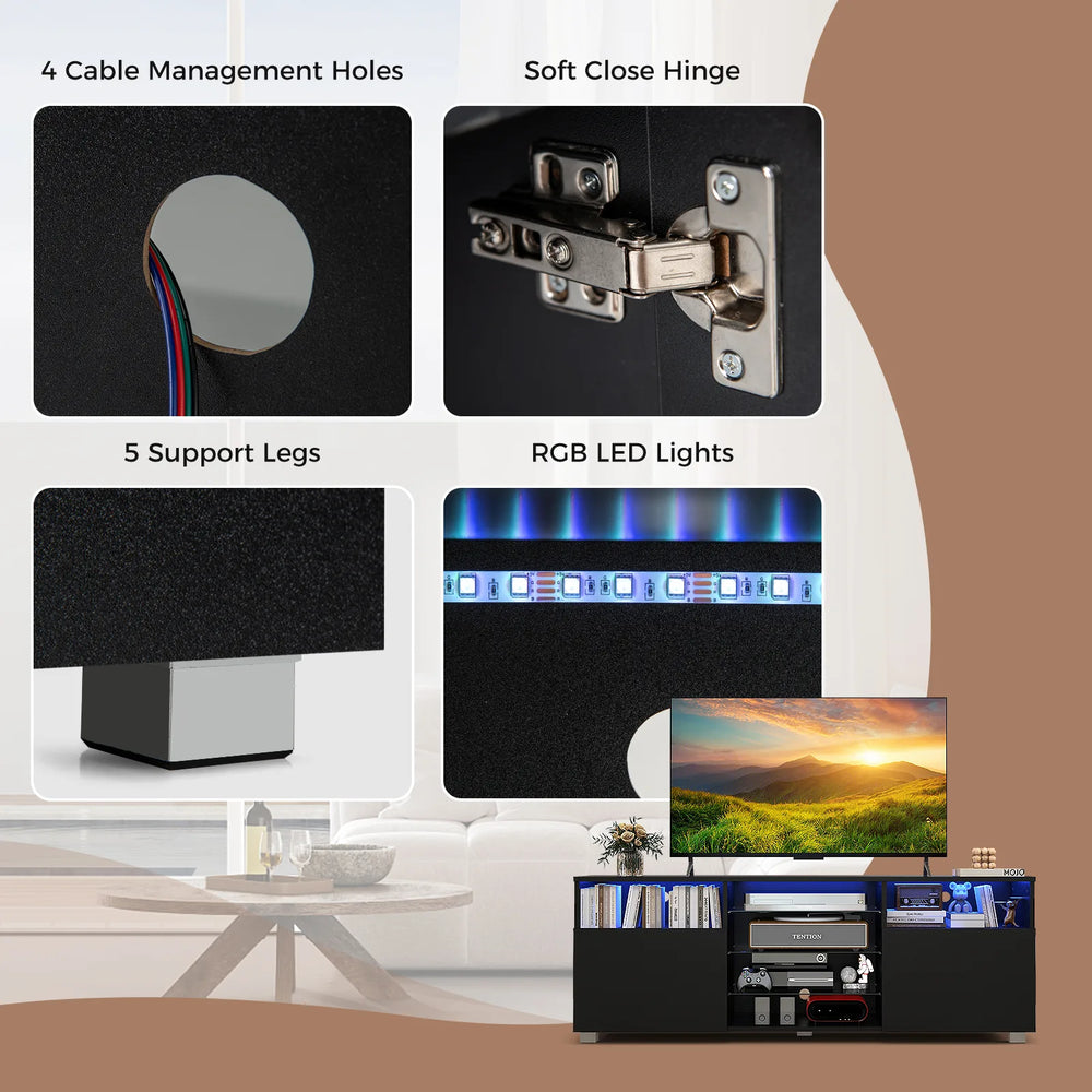 Console TV Stand for TVs up to 65 Inches with LED Lights and 2 Doors-Black