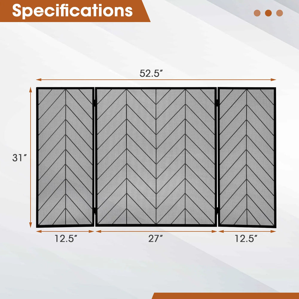 3-Panel Metal Foldable Fireplace Screen with Metal Mesh-Black
