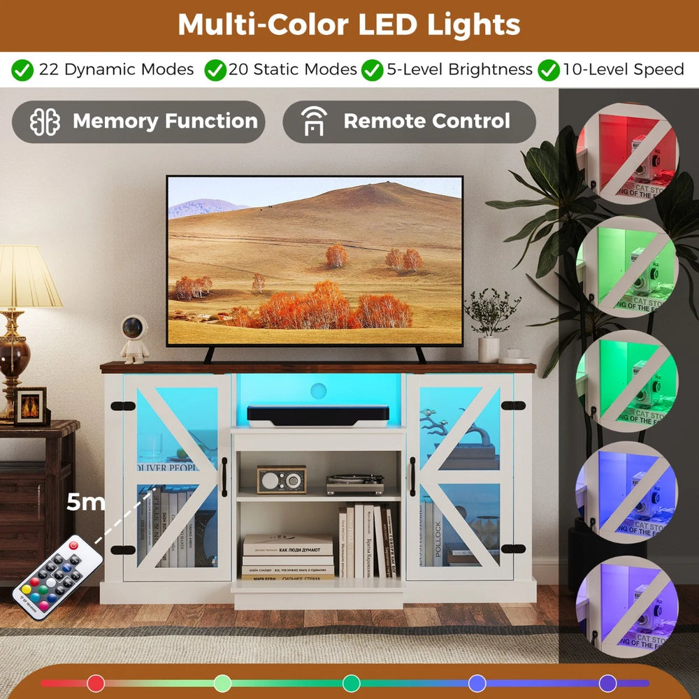 59 Inches Media Console Table with 3-Level Shelves and 22 Dynamic Modes-White