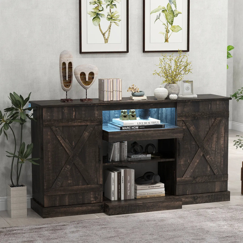 58 Inches TV stand for TVs up to 65 Inches with 20 Color Led Lights-Coffee