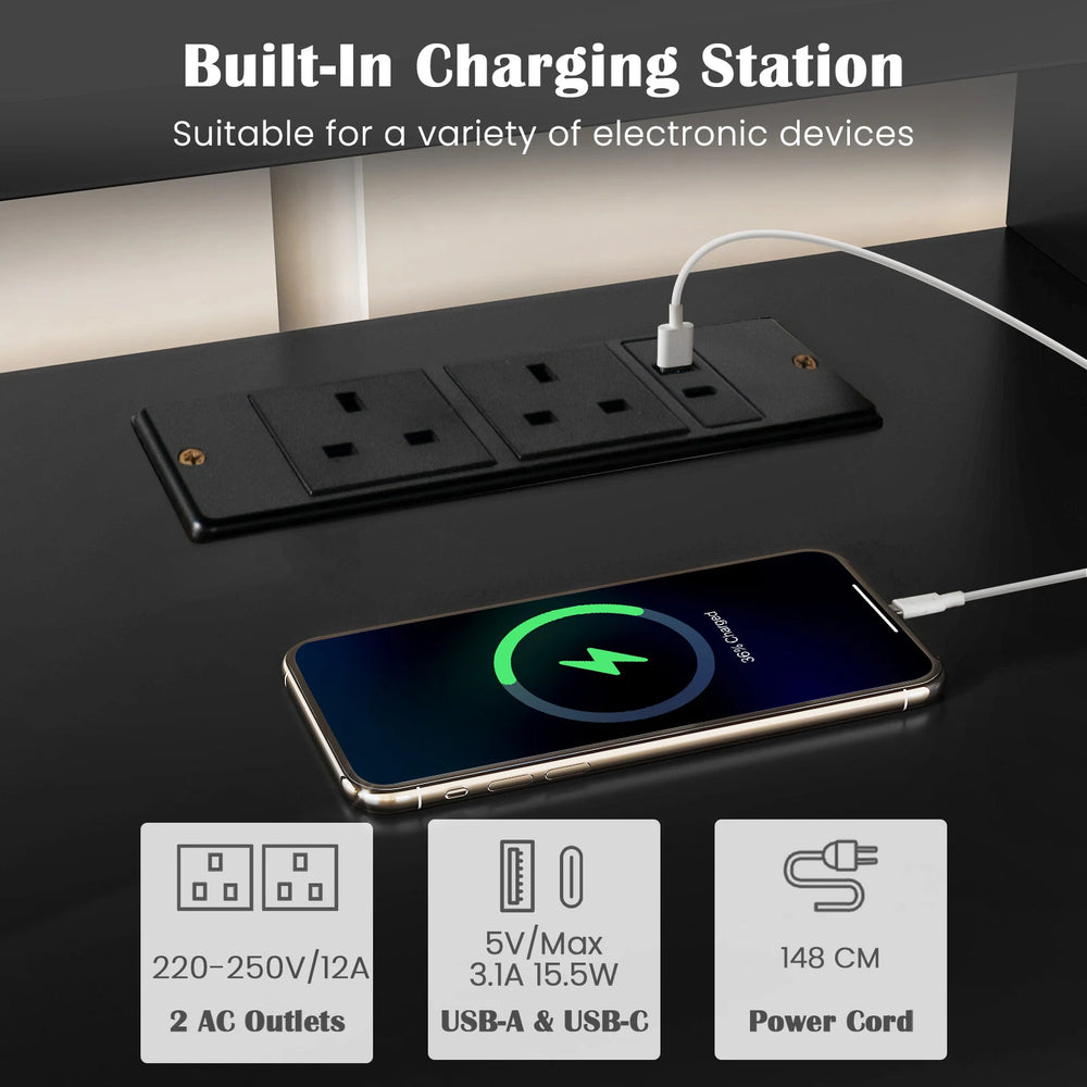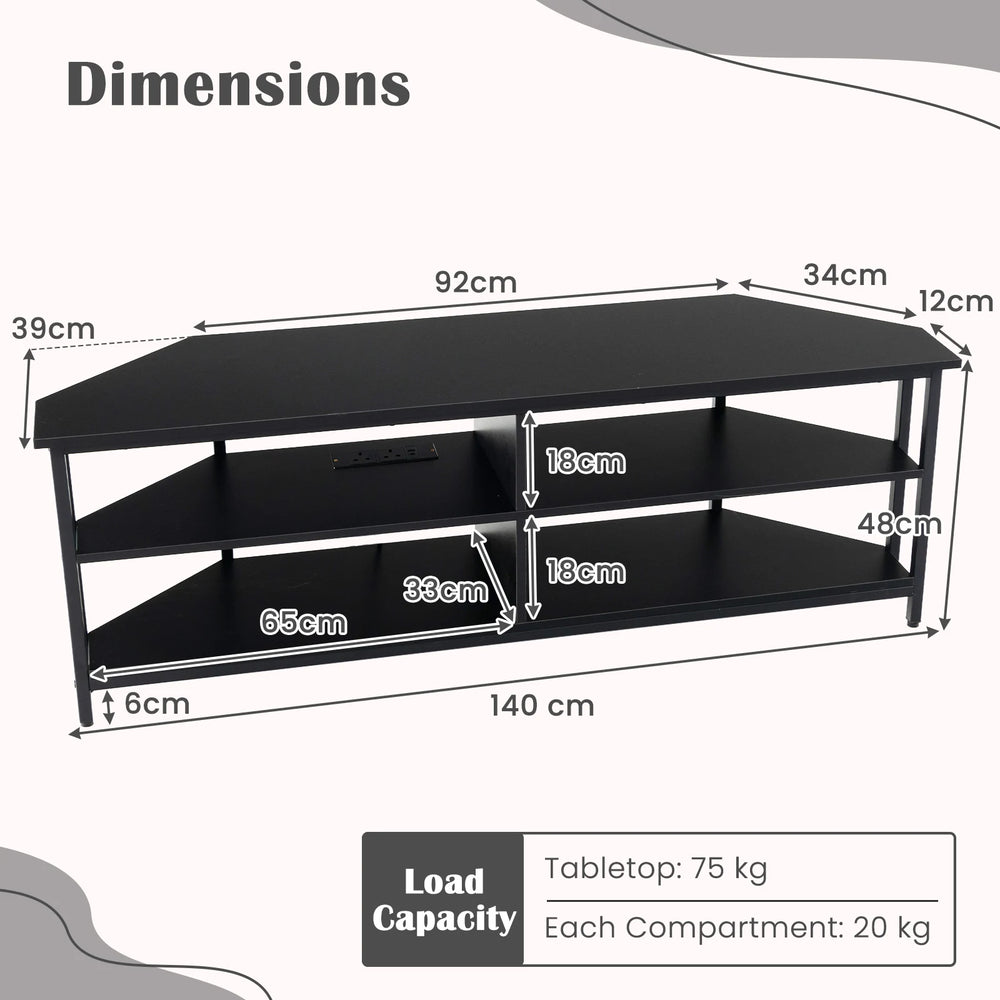 Corner TV Stand with AC Outlets and Storage Shelves-Black
