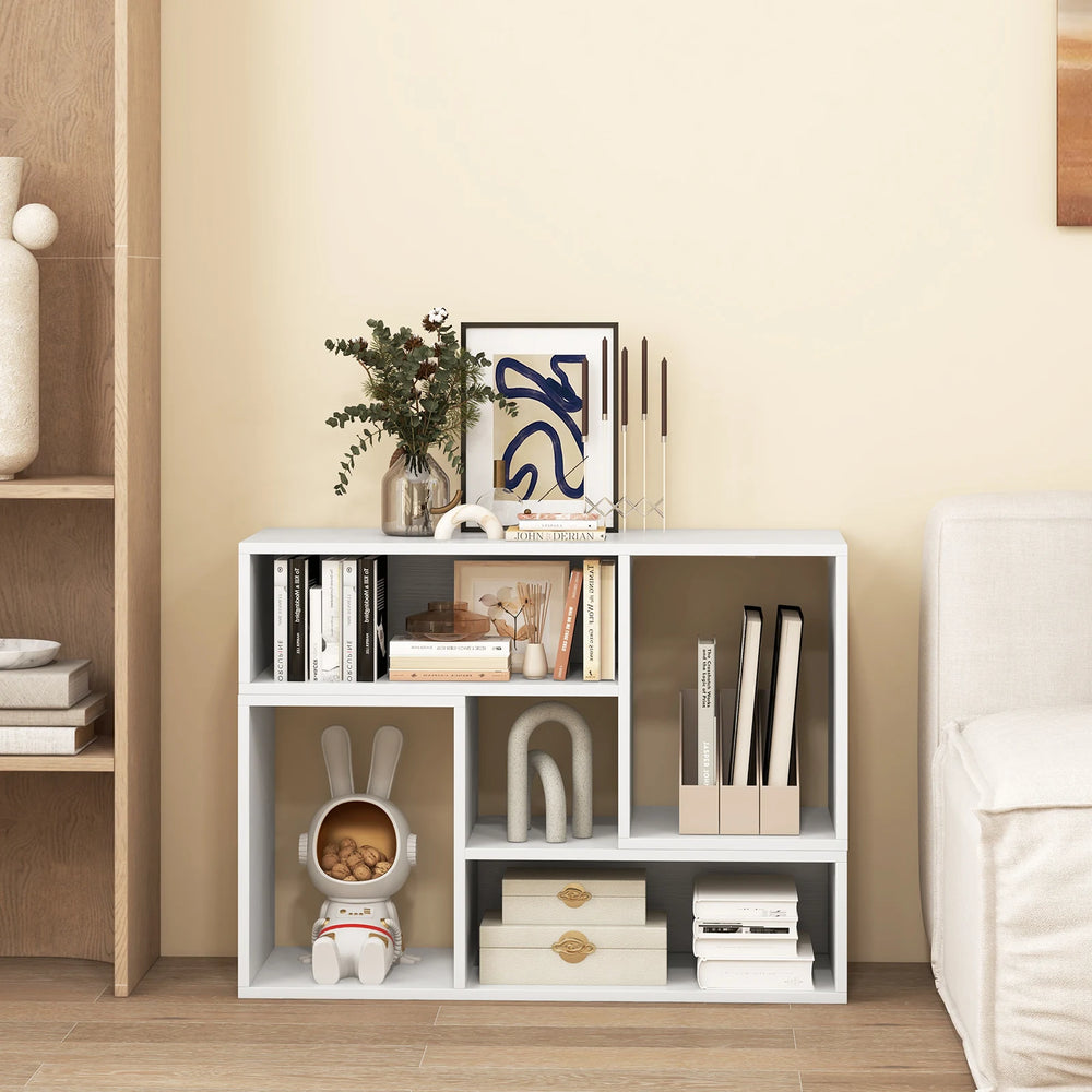 Color: Black/White Material: Engineered Wood, MDF Overall Dimensions of L-shaped Shelf: 80 x 30 x 40 cm (L x W x H) Dimension of Closed Back Cube: 48 x 28 x 17 cm (L x W x H) Dimensions of Open Back Cube: 26 x 30 x 37 cm (L x W x H) Weight Capacity of Each Cube: 10 kg Weight Capacity of Small Tabletop: 20 kg Weight Capacity of Large Tabletop: 50 kg Net Weight: 16.5 kg Package Includes: 2 x L-shaped Shelves 1 x Users Manual