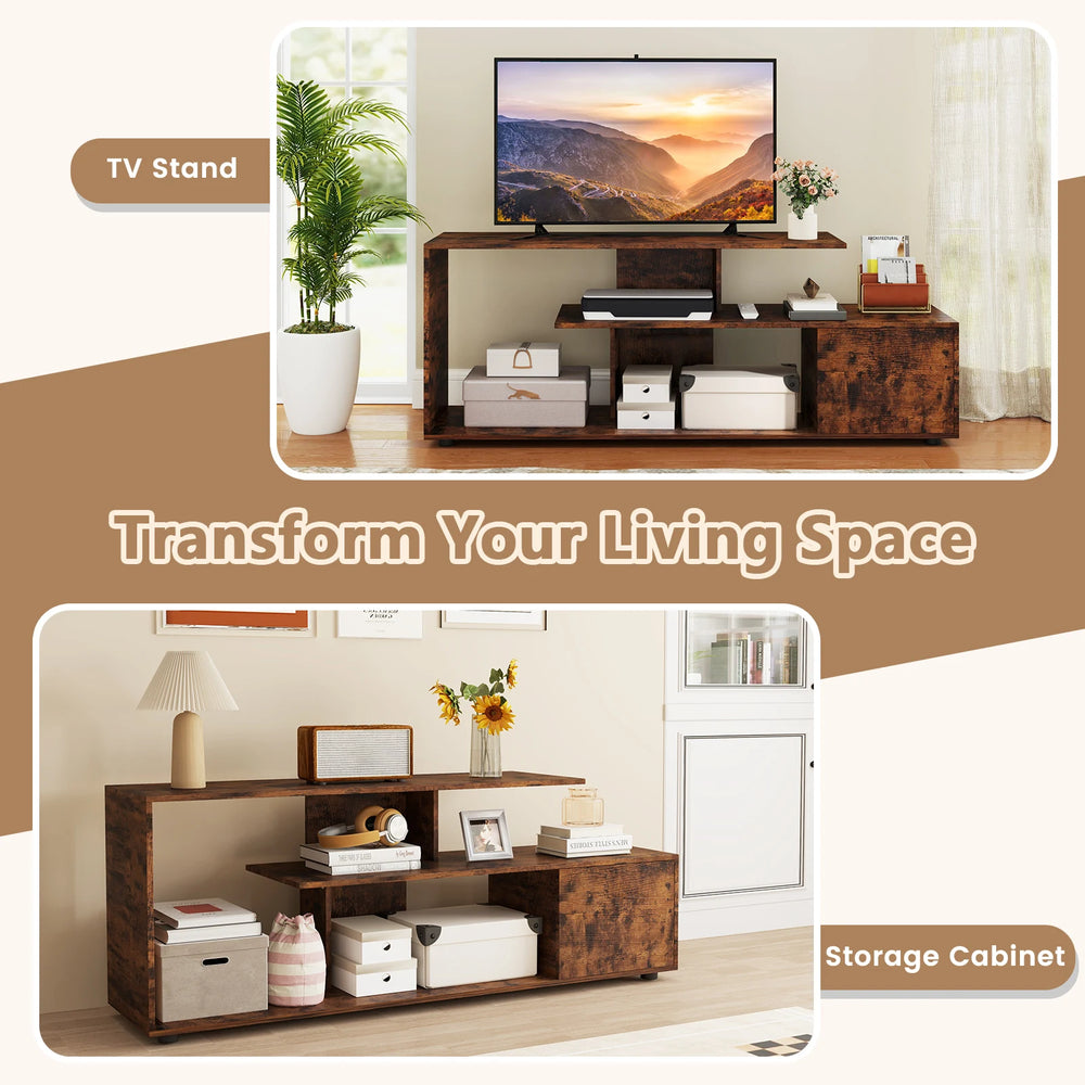 TV stand for TVs up to 55 inches with shelves & cabinet TV cabinet lowboard brown
