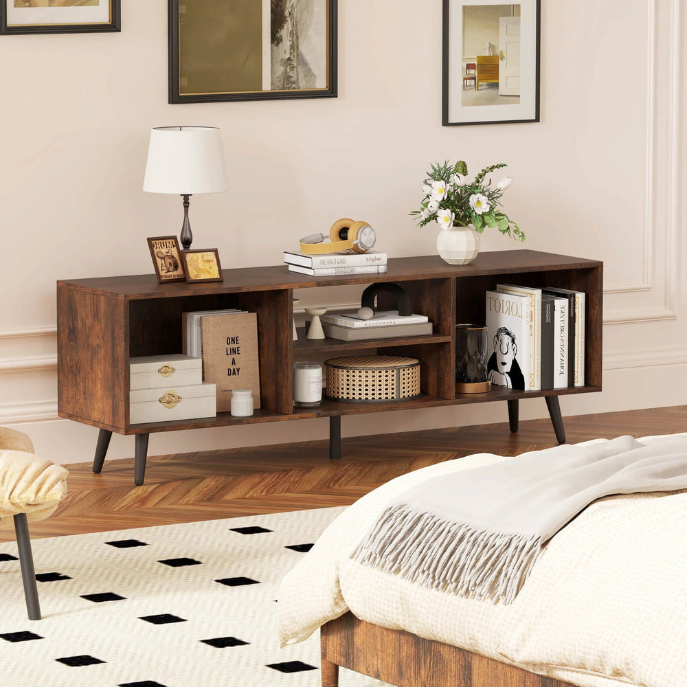 120cm Mid Century Modern TV Stand with Shelves and 5 Metal Legs-Rustic Brown