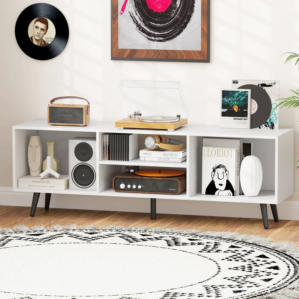 120cm Mid Century Modern TV Stand with Shelves and 5 Metal Legs-White
