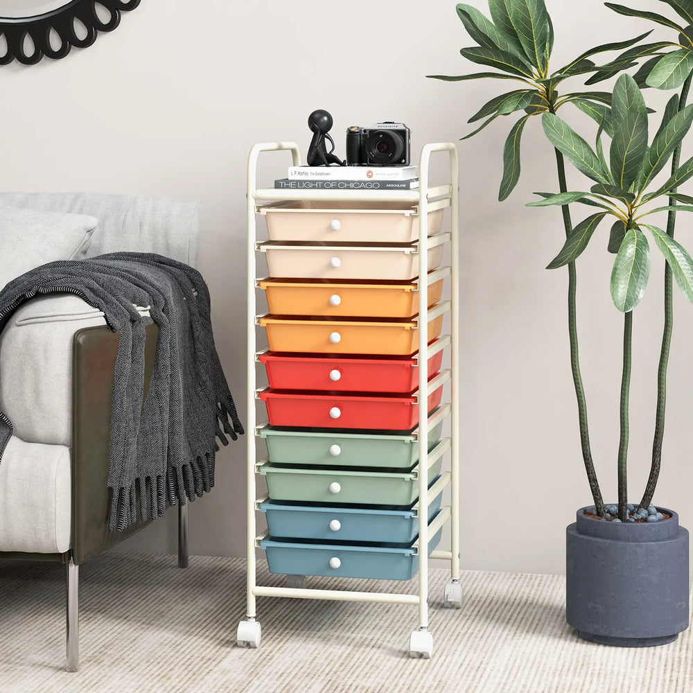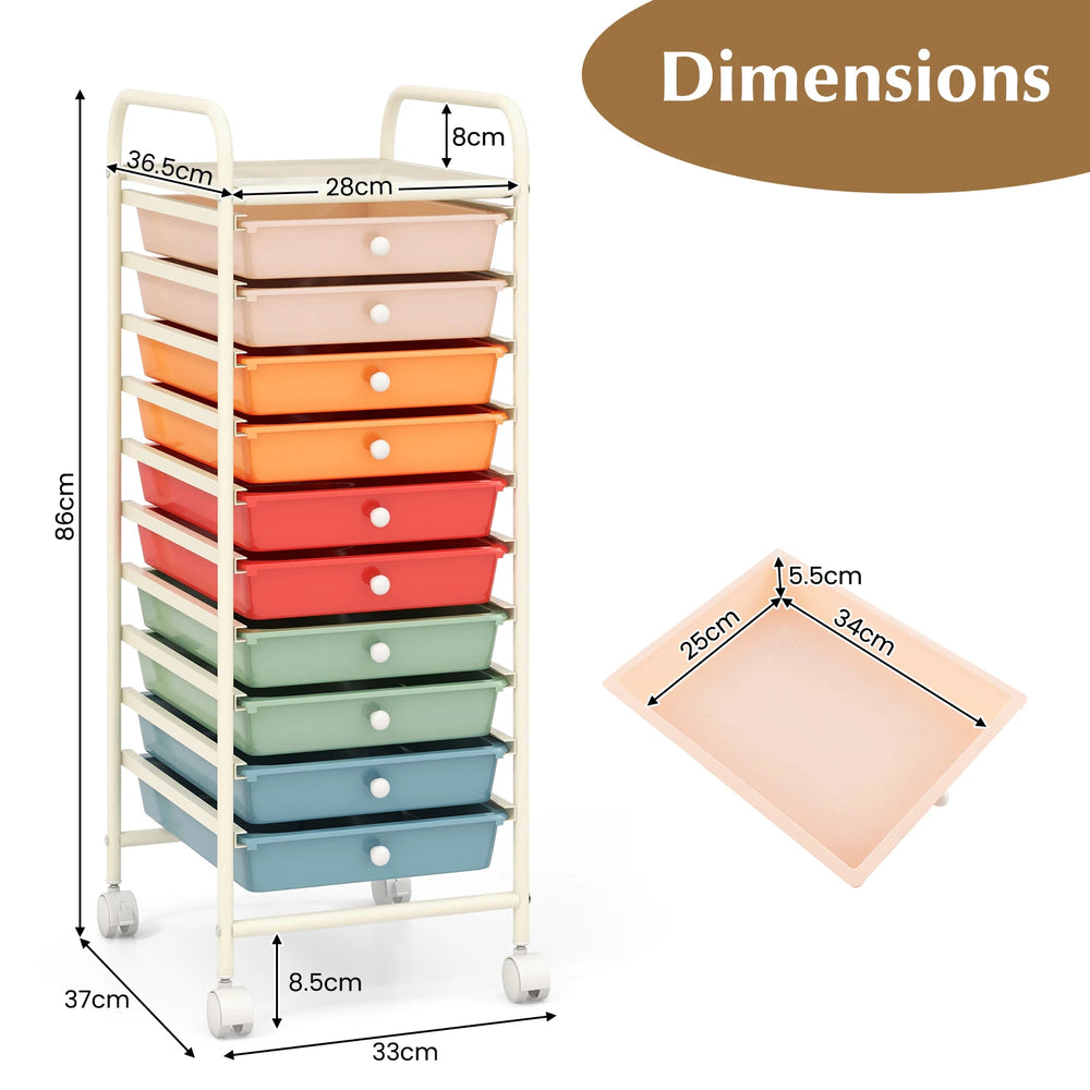 10 Drawer Rolling Storage Cart Organizer with 4 Universal Casters-Macaron Multicolor