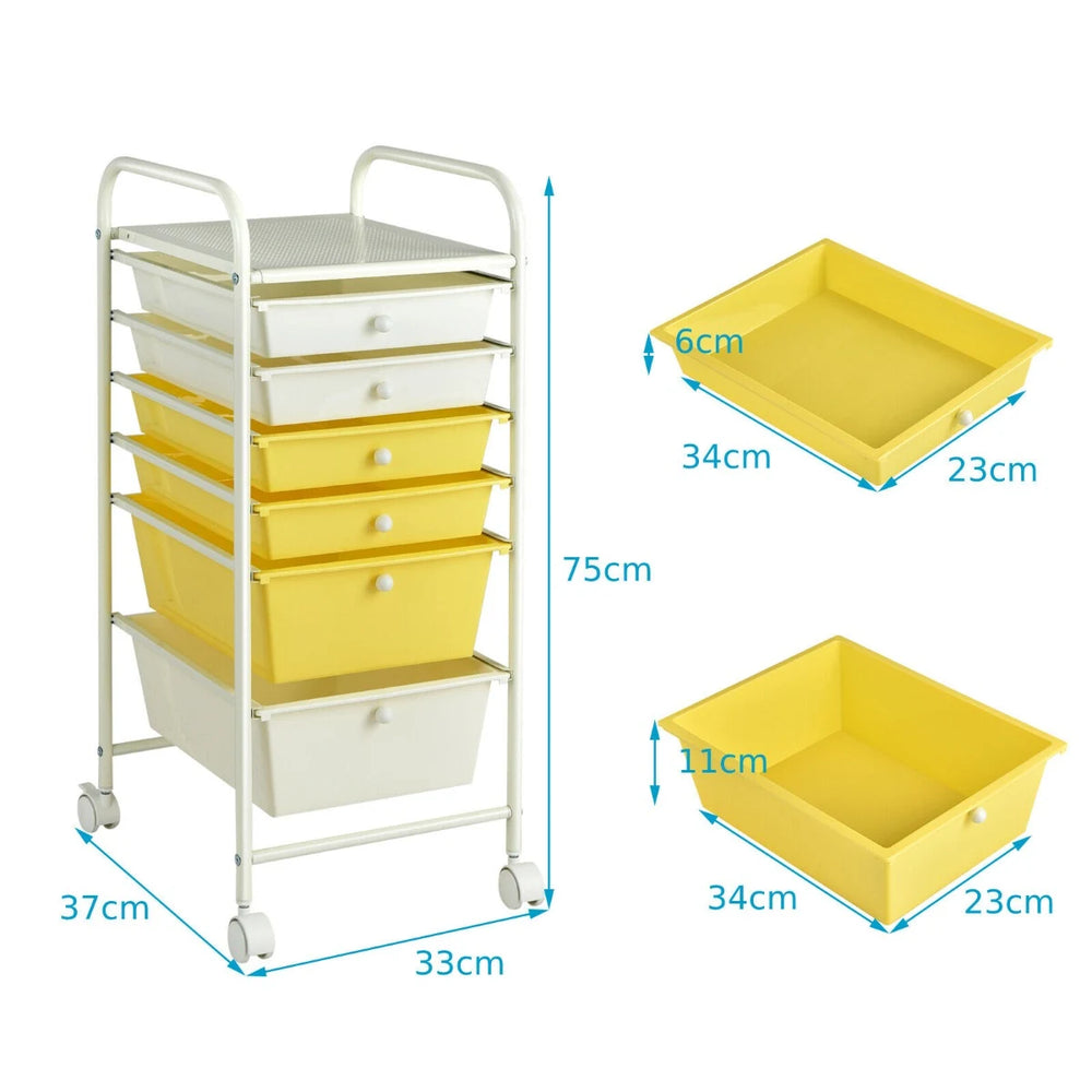 6 Drawers Rolling Storage Cart Organizer-Yellow