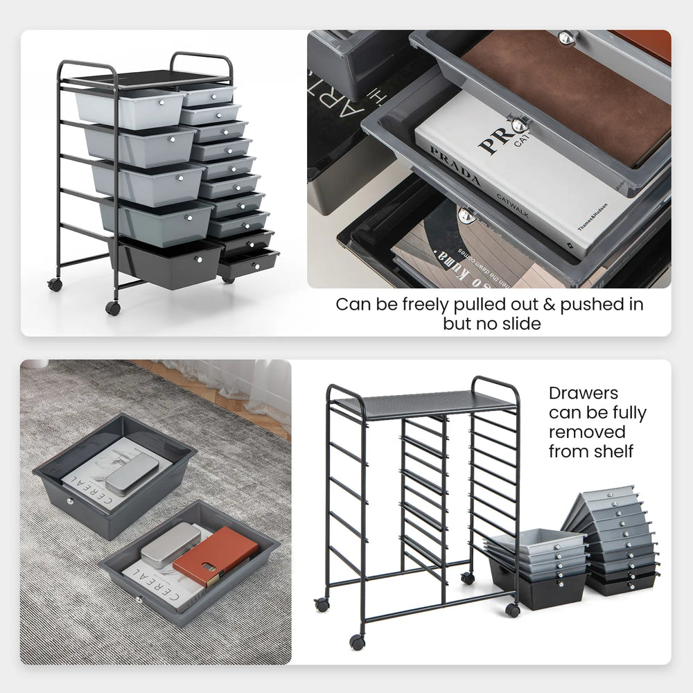 15 Drawer Rolling Storage Cart with 4 Wheels for Beauty Salon-Gradient Black With Black Frame