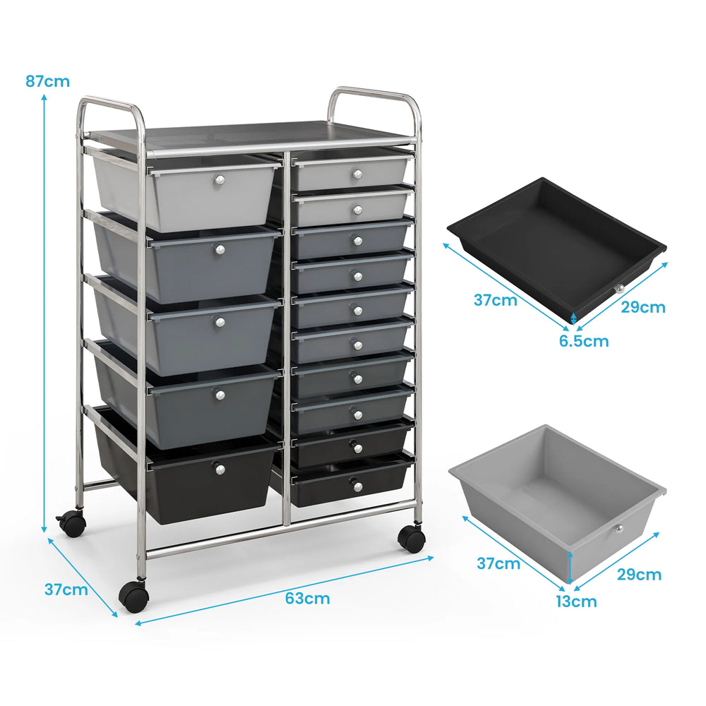 15-Drawer Utility Rolling Organizer Cart Multi-Use Storage-Black & Gray