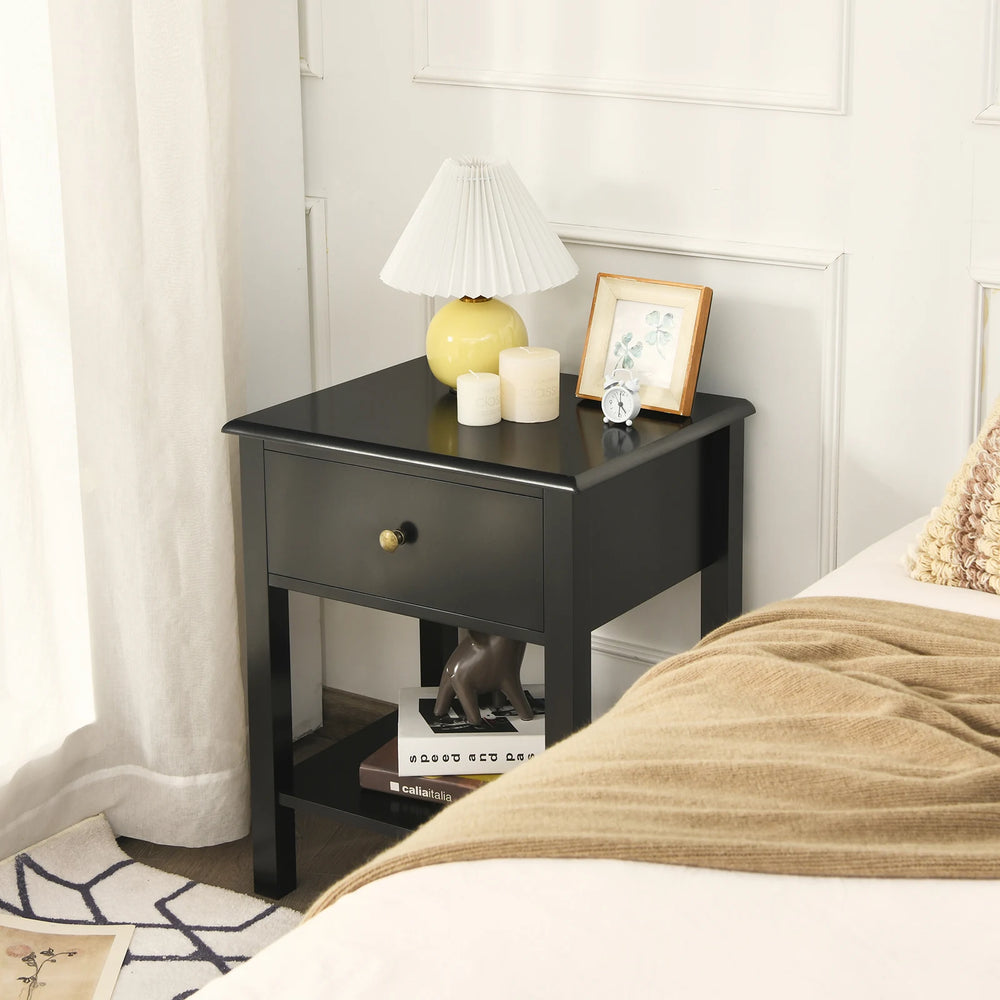 Modern Nightstand with Drawer and Shelf for Bedroom-Black