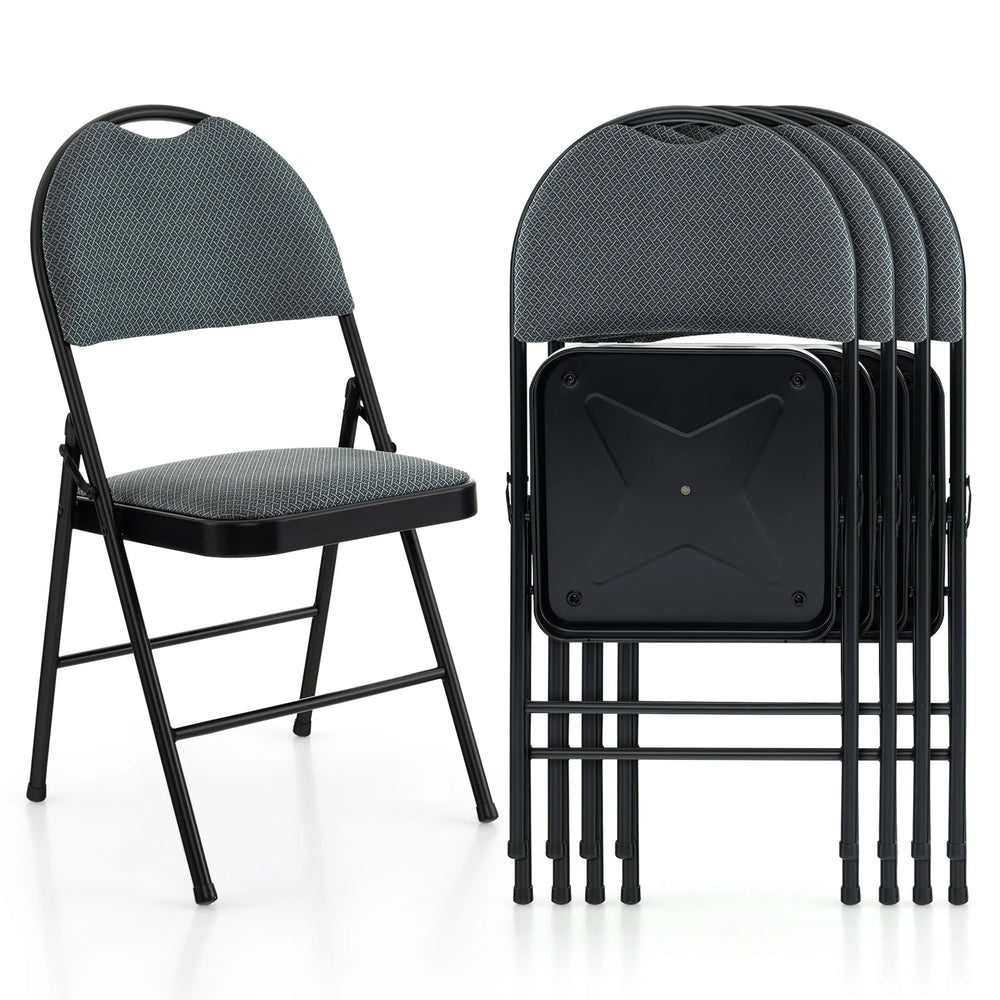 Color GrayMaterial Fabric, Metal, SpongeUnfolded Dimension 18.5" x 20" x 35" (L x W x H)Seat Dimension 16" x 16" (W x D)Seat Height from the Ground 18"Backrest Height 19"Backrest Width 18"Folded Dimension 18.5" x 43" (L x H)Maximum Capacity of Each Chair 264 lbsNet Weight of 6 Chairs 56 lbsNet Weight of 4 Chairs 37.5 lbsNet Weight of 2 Chairs 19 lbs