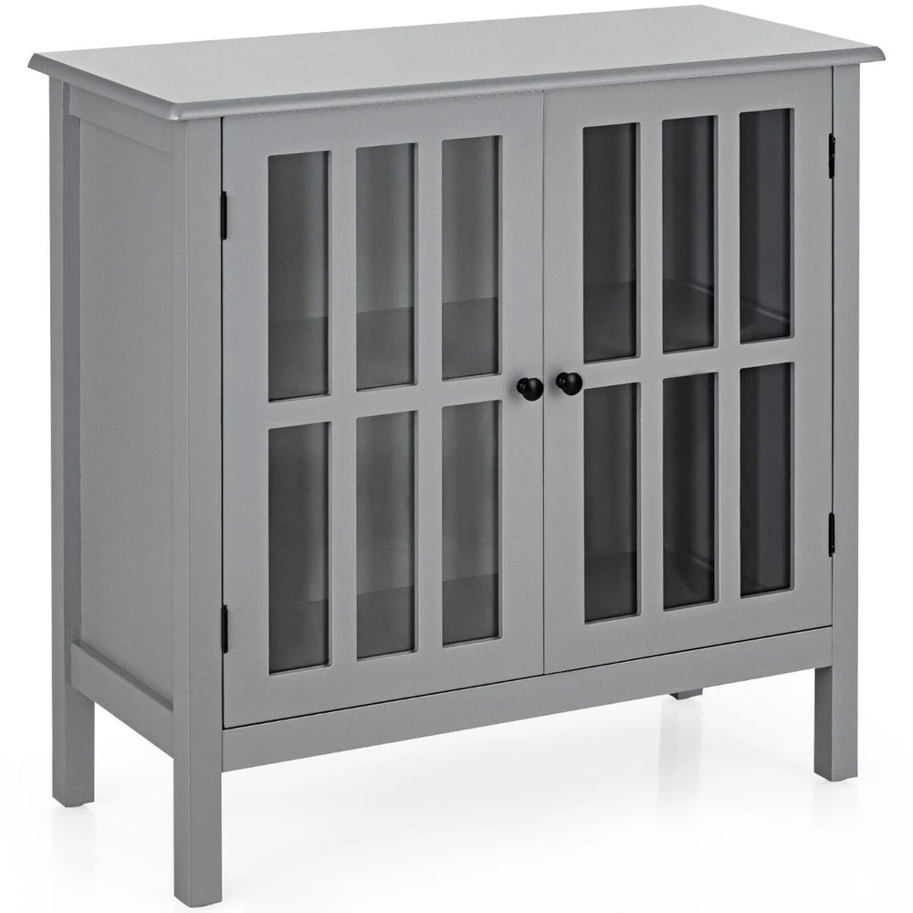 Are you looking for a cabinet to add more elegance to your house as well as keep the stuff organized? Our modern storage cabinet is a perfect choice for you! Featuring a simple style and elegant look, this buffet cabinet can fit well with any home decor. And this storage cabinet is constructed of premium MDF with 4 solid pine wood legs, which are super stable and durable. Equipped with a spacious top and 2-tier shelf, this sideboard provides ample storage space to satisfy your storage needs. Besides, the transparent glass-paneled doors are equipped with rounded knobs for easy opening and closing while allowing you to identify your goods easily. What's more, this cabinet is versatile that you can place it in any ideal place, including the hallway, bedroom, living room, dining room and more. Bullet Point: Stable Structure & Premium Materials: Made of high quality MDF with exquisite craftsmanship, this free standing cabinet is sturdy and durable enough to support long-lasting use. Besides, the heavy-duty wooden structure plus 4 solid pine wood legs is strong enough to hold your various belongings with a max capacity of 132 lbs. Ample Storage Space & Glass Doors: Equipped with a spacious tabletop and 2-tier shelf, this cabinet provides enough storage space for your various items like books, tableware, towels or plants. Moreover, transparent glass-paneled doors make it easy for you to see the position of the items with rounded knobs for easy opening and closing. Versatile Design & Wide Application: This cabinet combines utility function with an elegant look, making it ideal for both decoration and storage. And this multipurpose cabinet can work perfectly as a kitchen buffet cabinet, a living room console table, a bathroom storage table or an entryway table for displaying your collections. Elegant Appearance & Simple Style: Exquisitely designed with simplistic style and classic colors, this storage cabinet can fit well with any home decor. Additionally, the glossy tempered glass doors and smooth finish add a touch of elegance and chic to the cabinet, which makes it a perfect addition to brighten up your home. Easy to Assemble & Clean: Coming with detailed instructions and necessary accessories, it is easy to assemble the storage cabinet. You can complete the assembly work in a short time by following the instructions. In addition, the smooth painted surface is waterproof and easy to keep clean with damp cloth. Features: Made of durable MDF with fine painting for long lasting use 4 solid pine wood legs provide great stability and weight capacity 2-tier cabinet with spacious tabletop offers large storage space Simple and compact design ensure the versatility for any home decor Transparent tempered glass doors create an elegant and chic look Metal knobs and magnetic base for easy opening and closing Widely used in kitchen, bathroom, living room, entryway and more Smooth and waterproof surface for easy cleaning Easy to assemble with detailed instruction Specifications: Color: Grey Material: MDF, tempered glass, pine Product dimensions: 80.5cm x 35.5cm x 79cm Net weight: 17.5 kg Weight capacity of table top: 30 kg Weight capacity of middle shelf: 10 kg Weight capacity of bottom shelf: 20 kg Package Includes: 1 x Storage cabinet 1 x Instruction