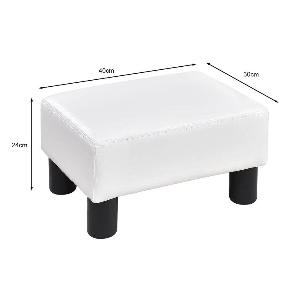 Small PU Leather Rectangular Seat Ottoman Footstool-White