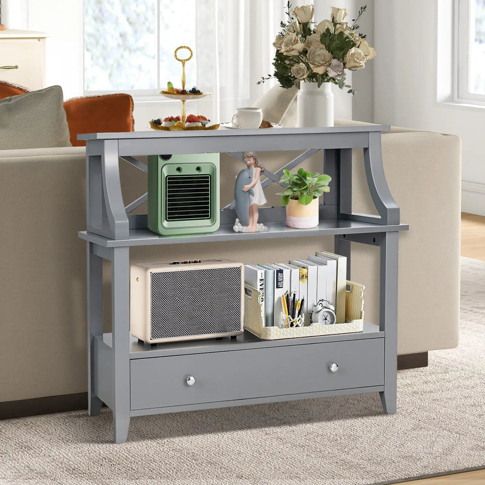 3-Tier Storage Rack End table Side Table with Slide Drawer -Gray