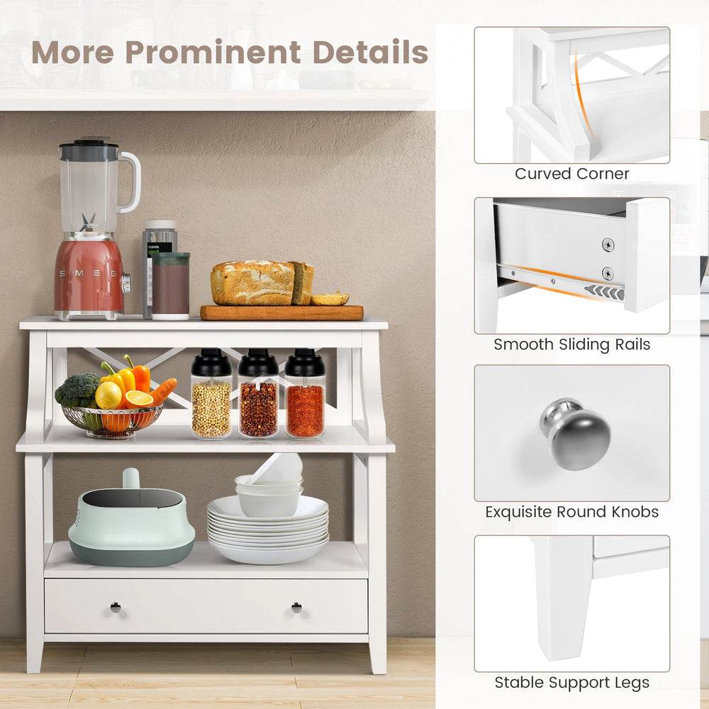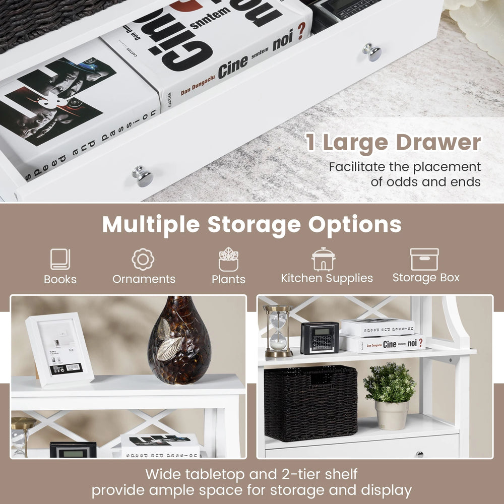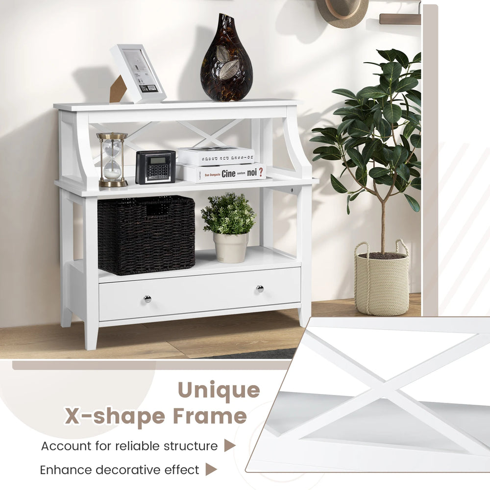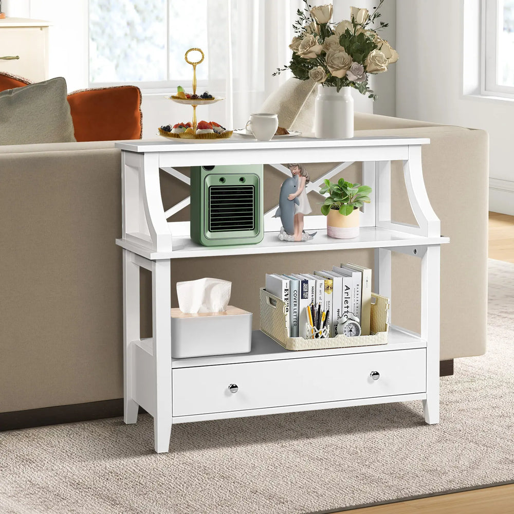 3 Tier Console Table with a Large Drawer for Living Room-White