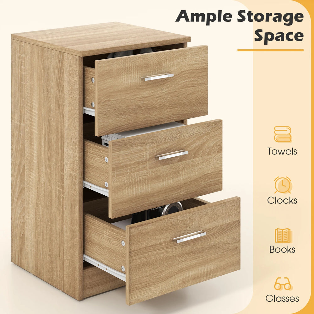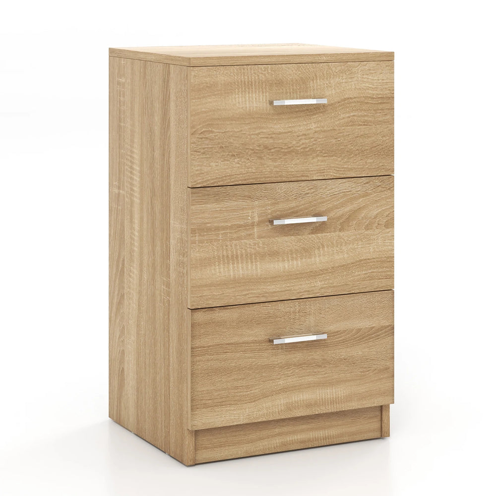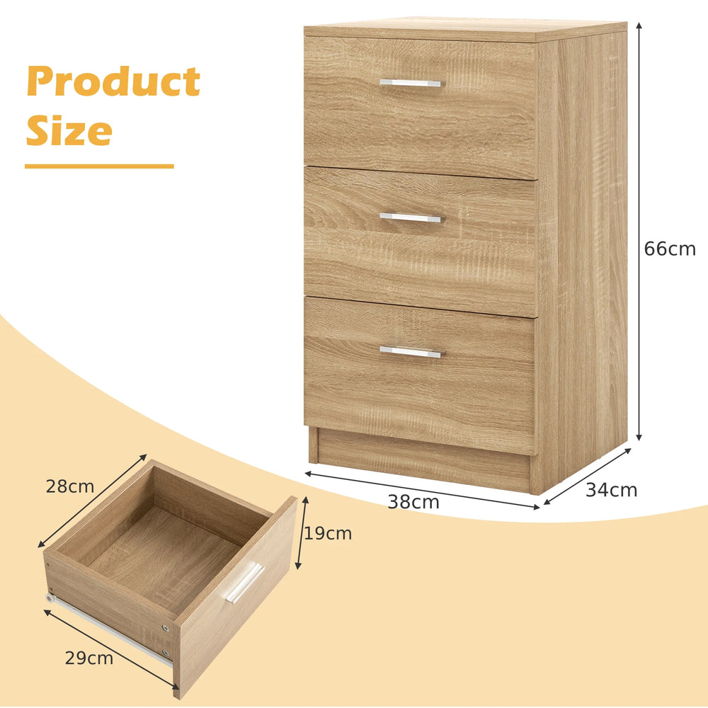 Bedside table with 3 drawers, side table, nightstand for box spring bed, 38 x 35 x 66 cm, natural