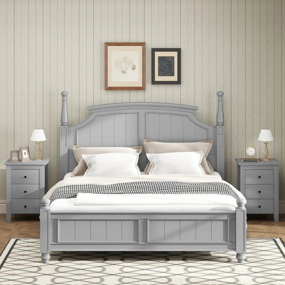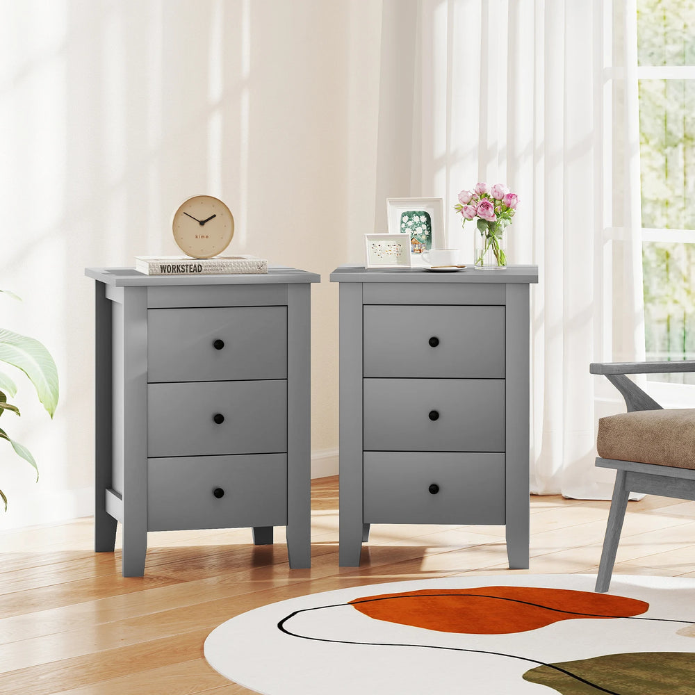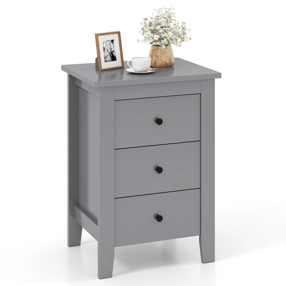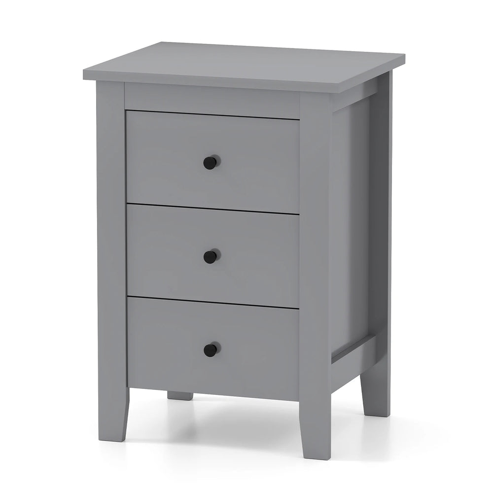 Wooden Nightstand with 3 Drawers and Stable Structure-Grey