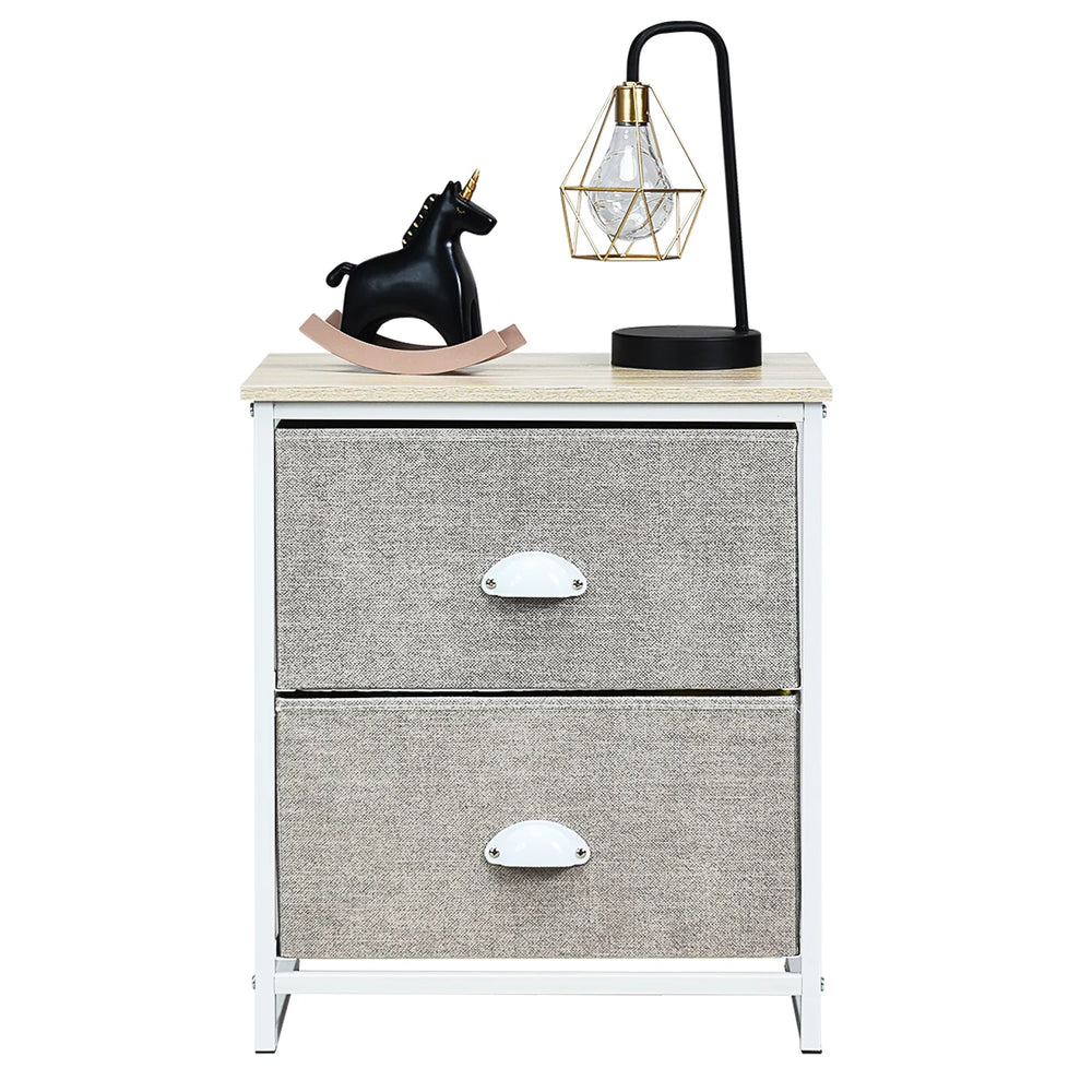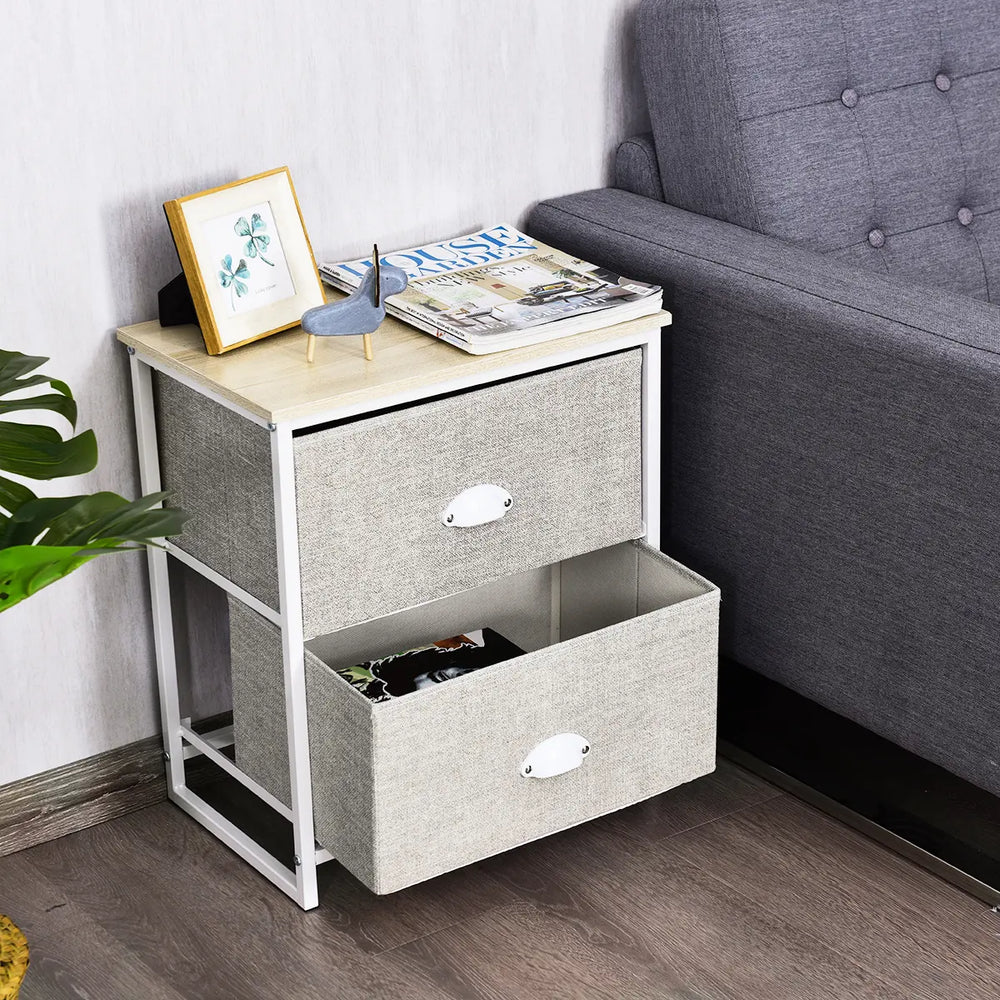 Metal Frame Nightstand Side Table Storage with 2 Drawers-Gray