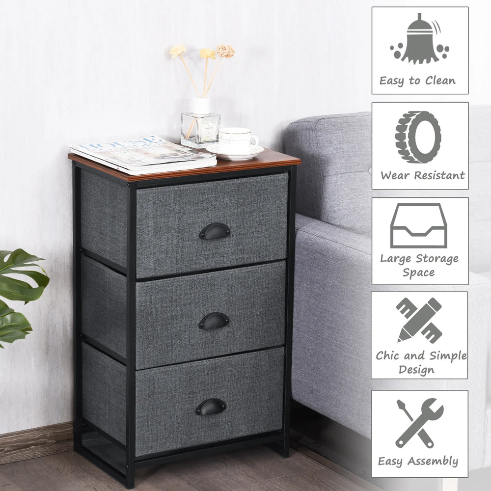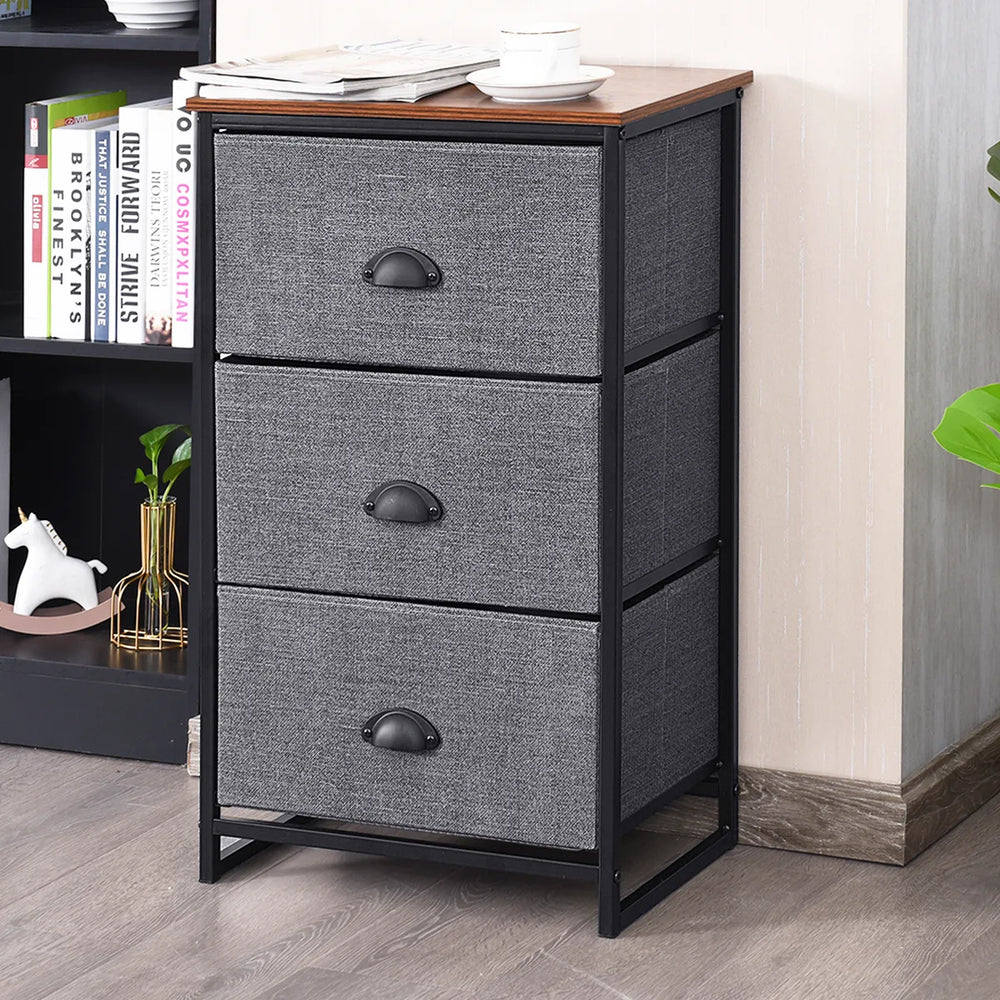 Nightstand Side Table Storage Tower Dresser Chest with 3 Drawers-Black