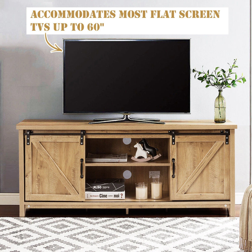 TV Stand Media Center Console Cabinet with Sliding Barn Door- Oak