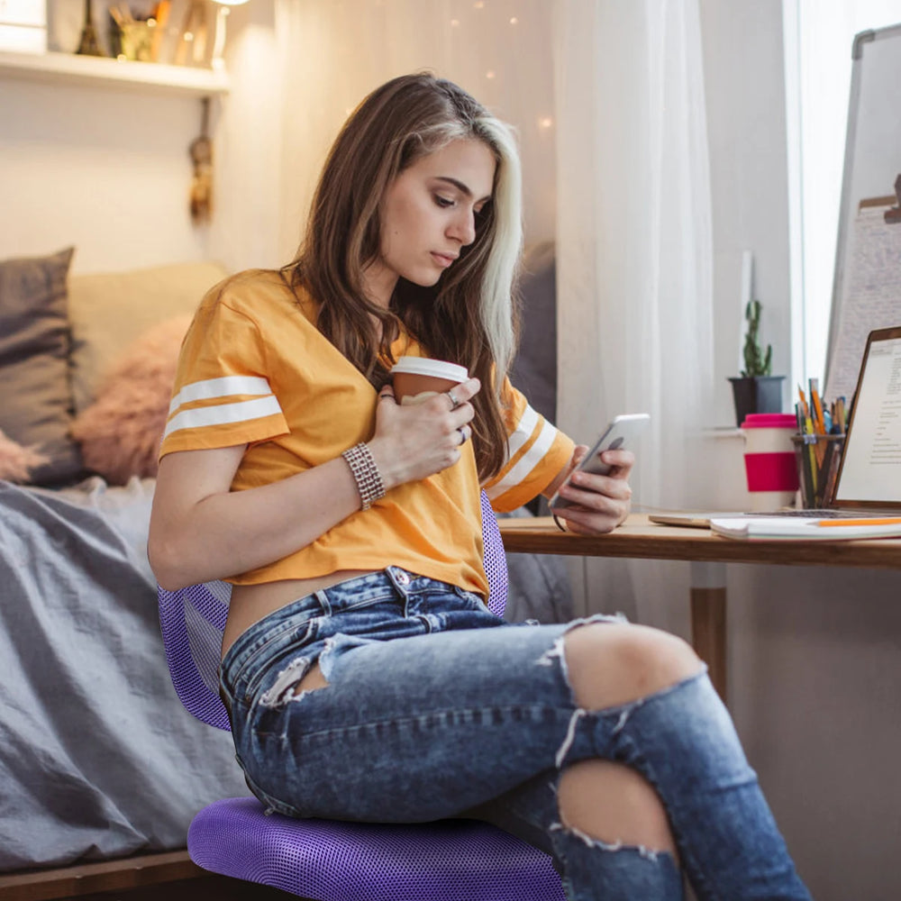 Color: Purple Material: mesh, sponge, plastic Overall dimension: 24.5" x 24.5" x 33.5" - 37" (L x W x H) Back size: 16" x 18" ( W x H) Seat size: 18" x 17" (W x D) Seat height: 17" - 20.5" Net weight: 15.5 lbs Weight capacity: 220 lbs Package includes: 1 x Office chair 1 x Instruction