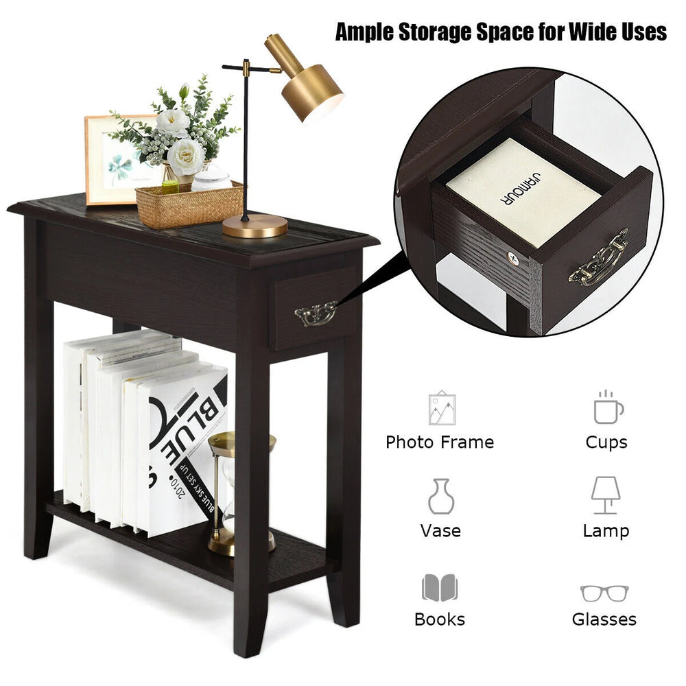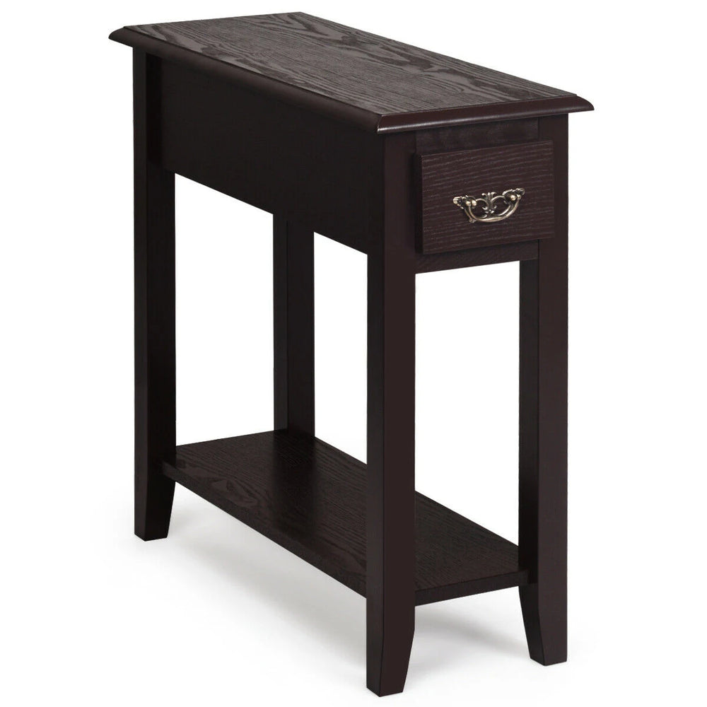 2 Tier End Bedside Sofa Side Table Narrow Nightstand-Espresso