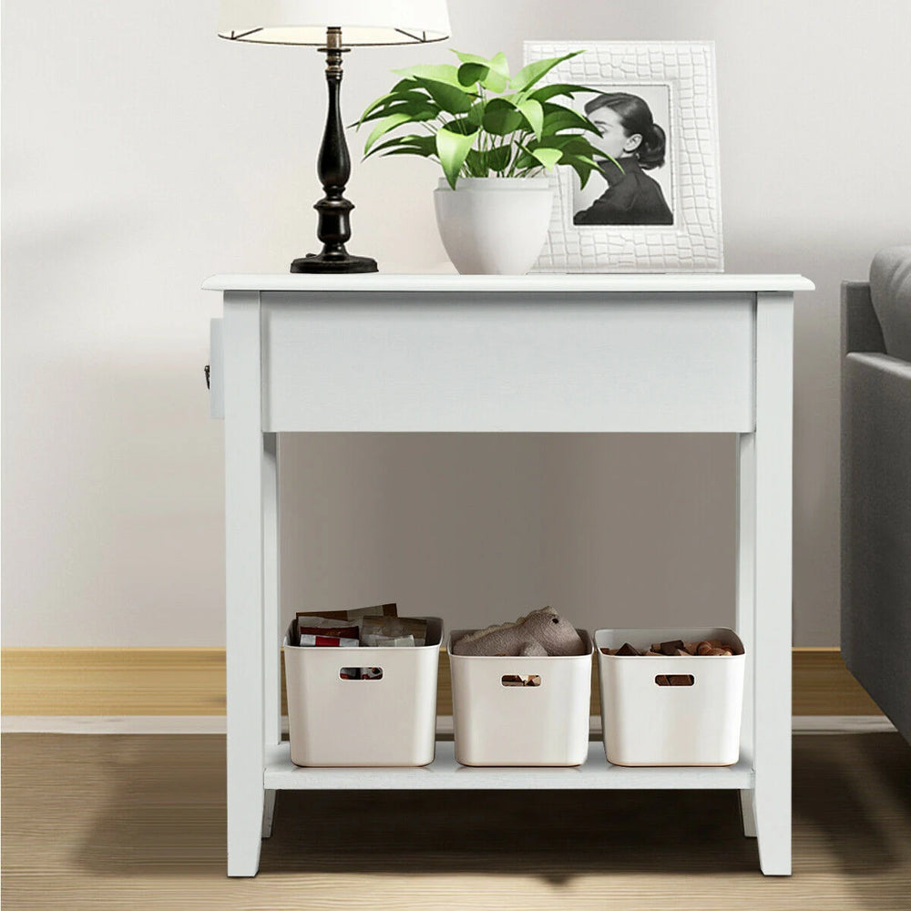 - Practical storage: single pull-out drawer conceals small items and a lower open shelf keeps everyday objects organised and reachable.