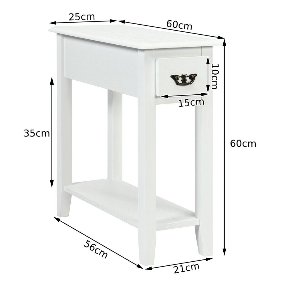 - Space-saving design: narrow footprint fits beside sofas or beds without crowding the room, while offering two tiers of usable surface.
