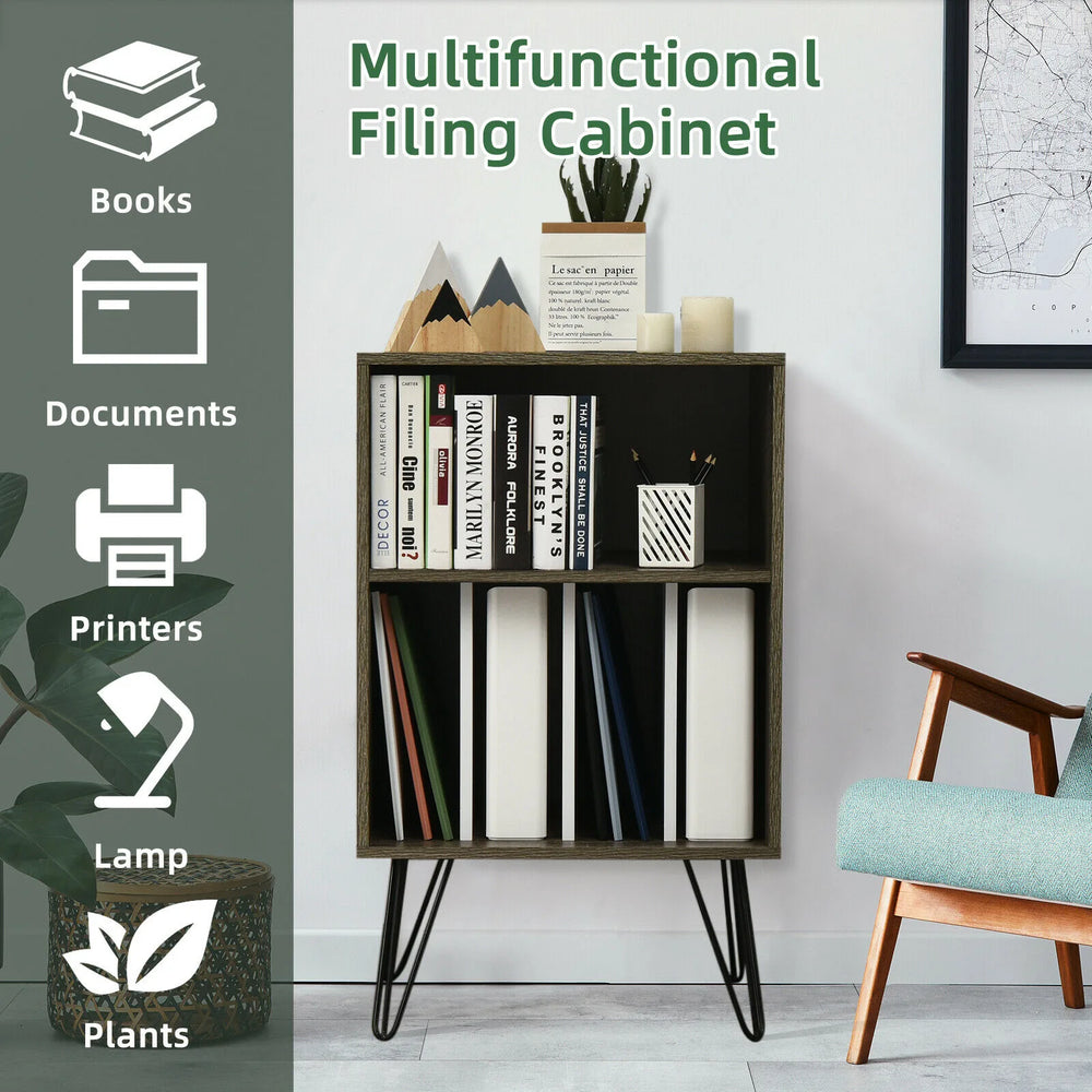 Record Player Stand with 5 Open Compartments for Living Room & Bedroom-Brown is backordered and will ship as soon as it is back in stock.