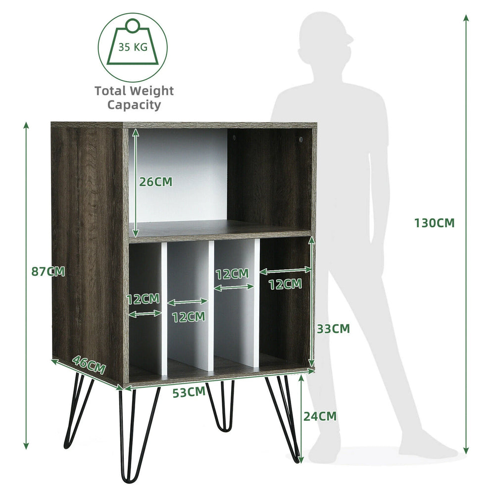 Record Player Stand with 5 Open Compartments for Living Room & Bedroom-Brown