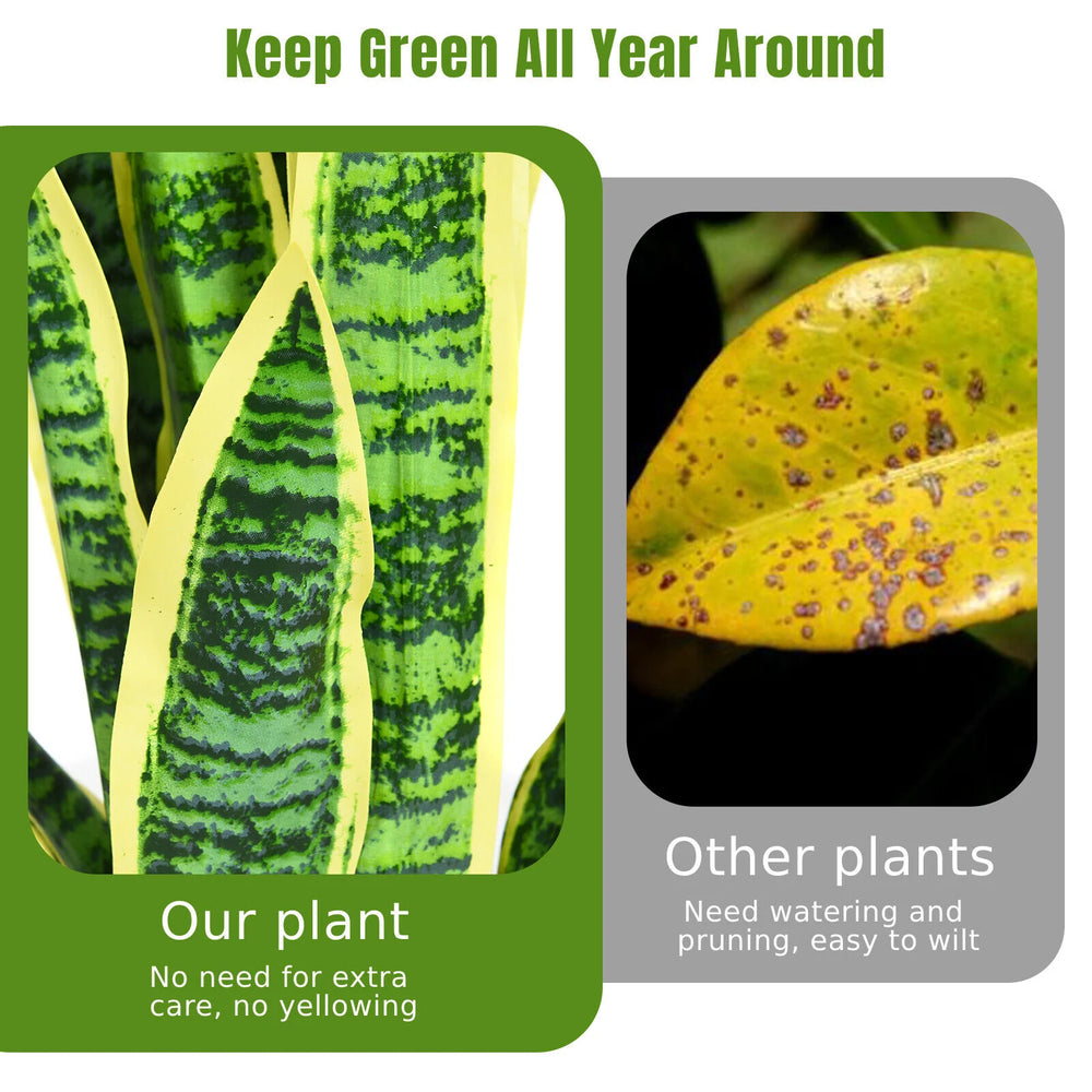 Bring effortless greenery to any room or sheltered outdoor spot with this lifelike 90cm artificial snake plant. The slender, strong leaves display a bright yellow edge and vivid green tones for a convincing natural look without the upkeep of a real plant.