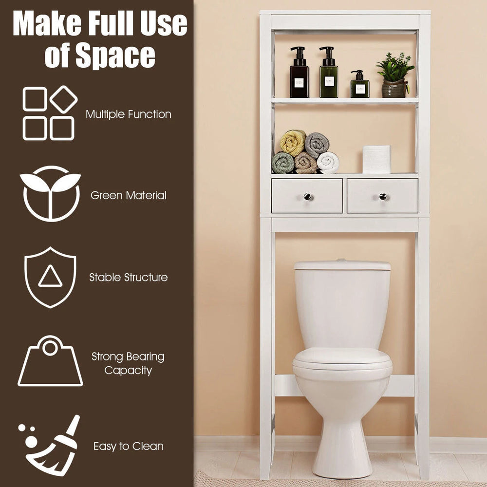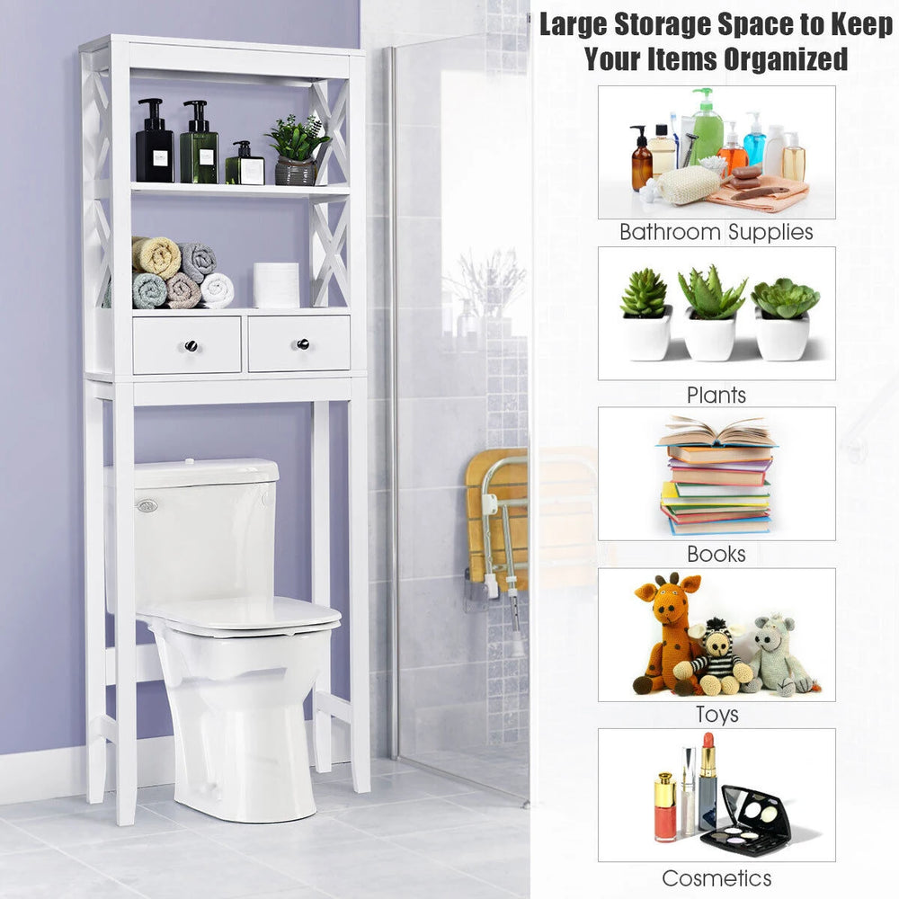 X-Frame Over The Toilet Bathroom Storage Shelf with 2 Drawers